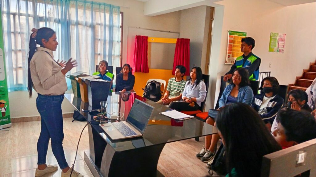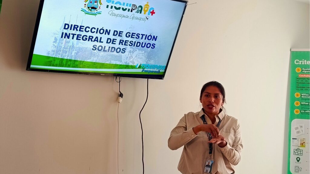 El encuentro contó con la participación de la Ing. Jhoselyn Lafuente, directora del área de Gestión Integral de Residuos Sólidos (GIRS) del Gobierno Autónomo Municipal de Tiquipaya, quien compartió información sobre las acciones que se impulsan desde el gobierno municipal para la gestión responsable de los residuos. Asimismo, se destacó la importancia de que las y los jóvenes asuman un rol activo como agentes de cambio en la construcción de comunidades sostenibles.
