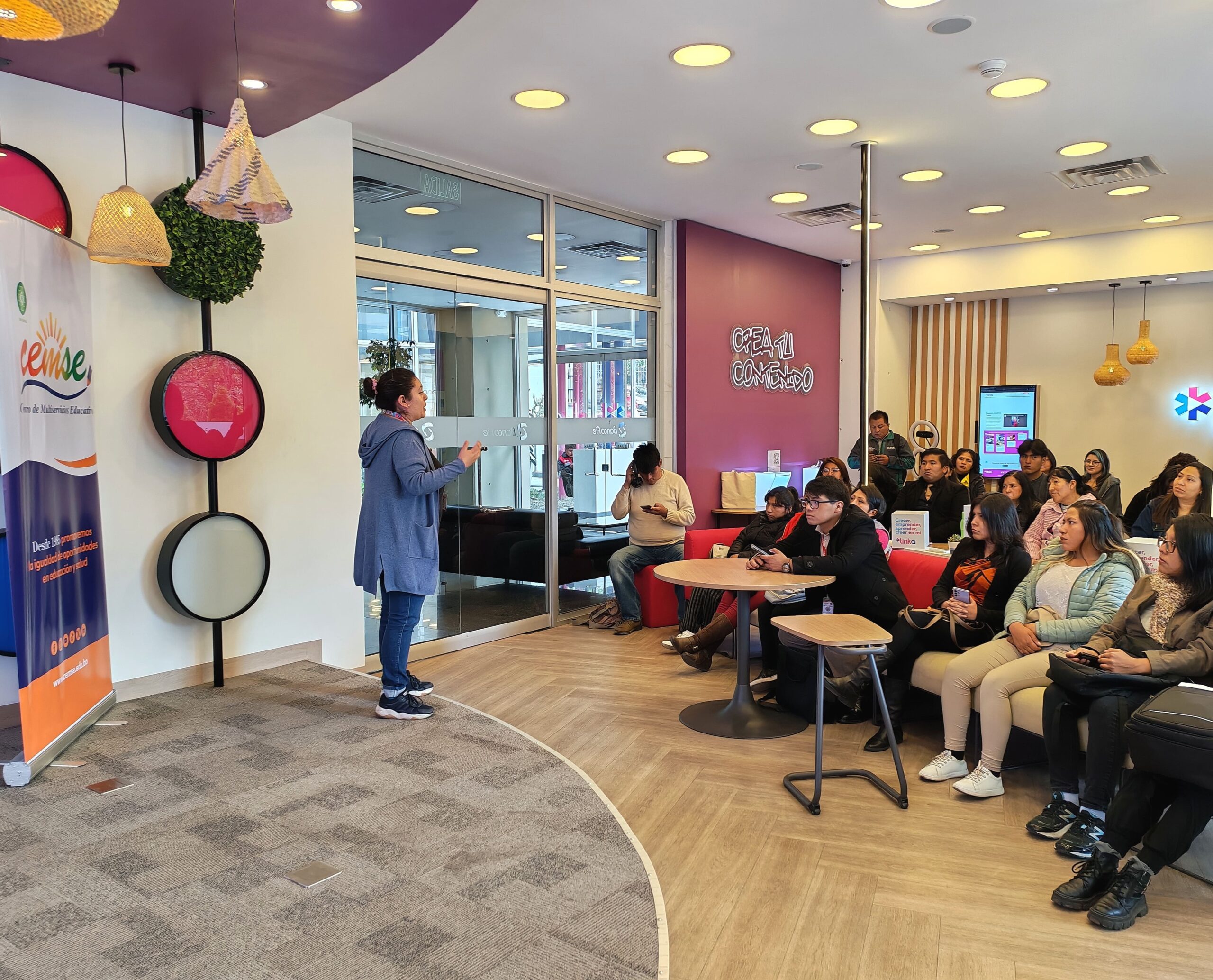 Como parte de las acciones del Proyecto Formación Técnica de Jóvenes de Contextos Vulnerados, Especialmente Mujeres, que Genera Oportunidades Laborales y Medios de Vida en Bolivia financiado por la Agencia Española de Cooperación Internacional para el Desarrollo (AECID), se llevó a cabo la primera sesión informativa de la iniciativa emprendedora TINKA, de Banco FIE, dirigida especialmente a los jóvenes que forman parte de la Red de Emprendedores “Impulsando Sueños”.