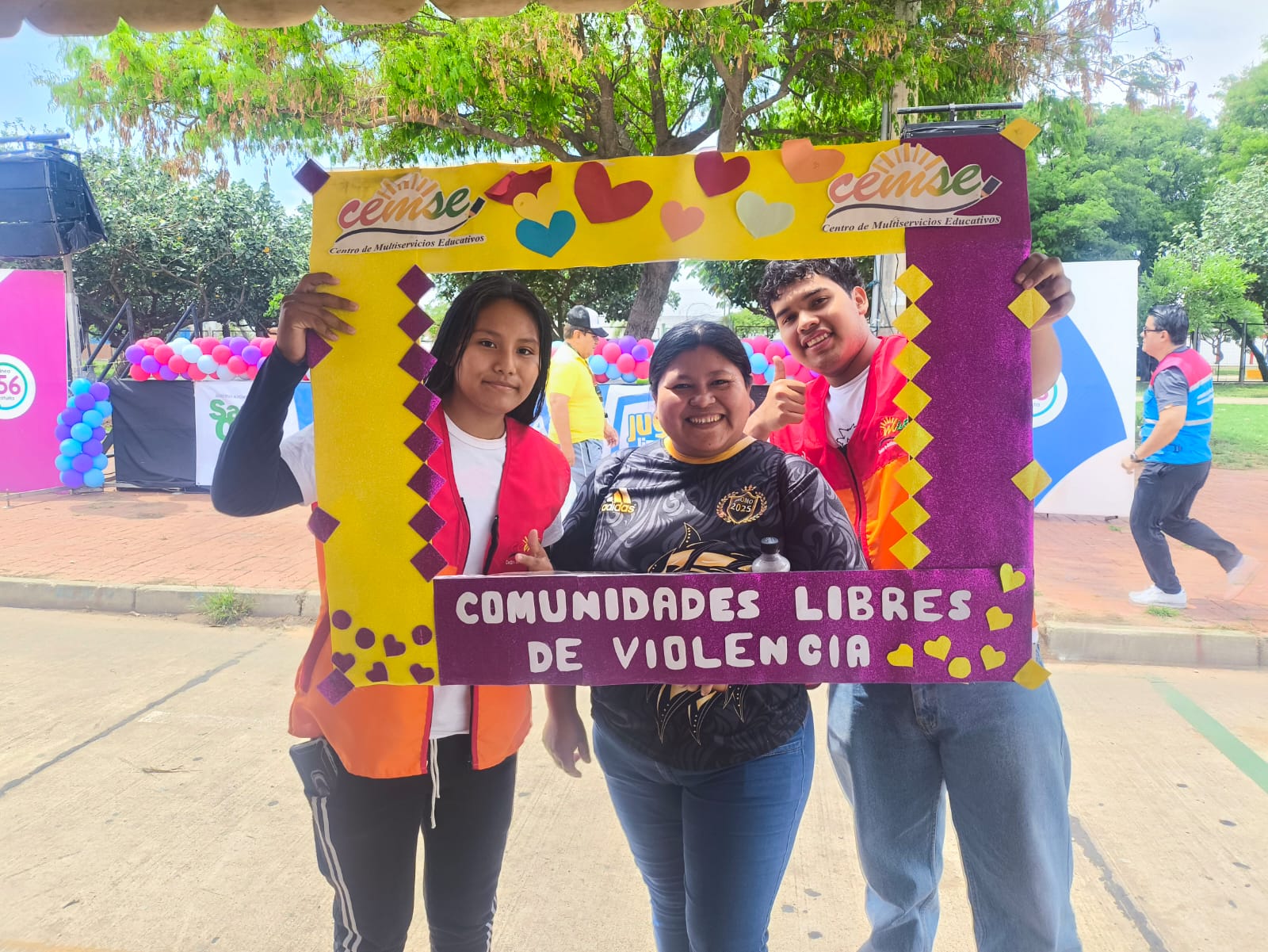 En el marco del proyecto “Comunidades Libres de Violencia – 2da Fase”, ejecutado por el Centro de Multiservicios Educativos (CEMSE) con el apoyo de la MariaMarina Foundation, adolescentes líderes participaron activamente en la Feria de Prevención del Consumo y Tráfico Ilícito de Drogas, desarrollada en la zona del Plan 3000 del municipio de Santa Cruz.