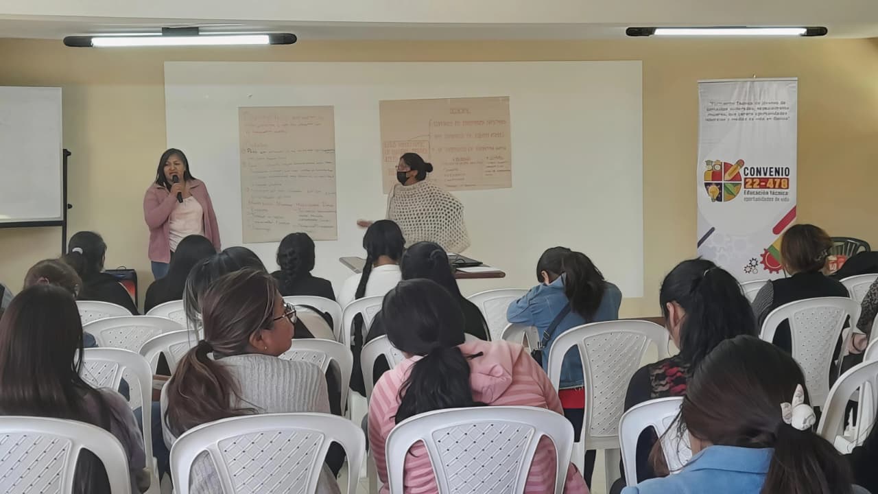 En el marco del proyecto “Formación técnica de jóvenes de contextos vulnerados, especialmente mujeres, que genera oportunidades laborales y medios de vida en Bolivia”, financiado por la Agencia Española de Cooperación Internacional para el Desarrollo (AECID) y ejecutado por el Centro de Multiservicios Educativos (CEMSE), se consolidan las acciones con este ciclo de talleres se consolida el objetivo de formar a jóvenes como agentes de cambio, capaces de generar propuestas innovadoras con sentido social, desde la perspectiva de la Economía Social y Solidaria, que promueve la equidad, la inclusión y la cooperación como base del desarrollo sostenible