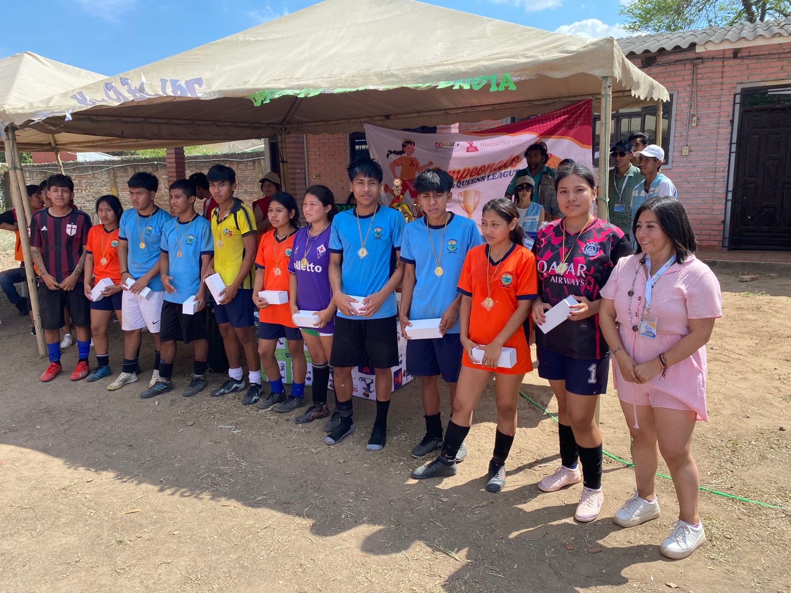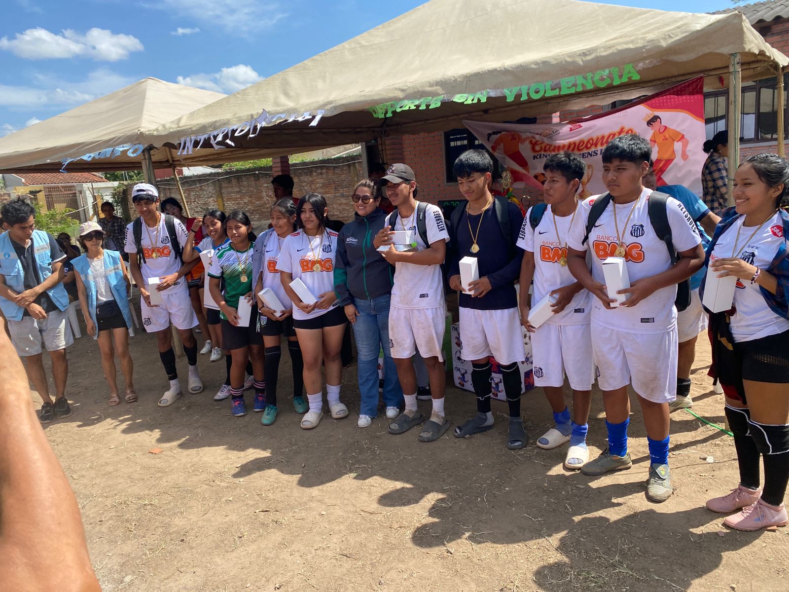 Ambas finales se desarrollaron en un ambiente de entusiasmo y participación activa de toda la comunidad educativa. Las barras, conformadas por estudiantes, maestros y padres de familia, alentaron a sus equipos con mensajes de prevención y alegría. En Santa Cruz, la unidad educativa 25 de Octubre se coronó campeona, mientras que en Palca el título fue para la unidad educativa Santa Rosa de Lima. Ambos equipos ganaron trofeos y un premio de Bs. 2.000 destinado a mejoras en sus respectivas unidades educativas, como la refacción de baños, adquisición de cámaras de seguridad u otras necesidades urgentes que contribuyan a un entorno escolar más seguro y adecuado para el desarrollo integral de los estudiantes.