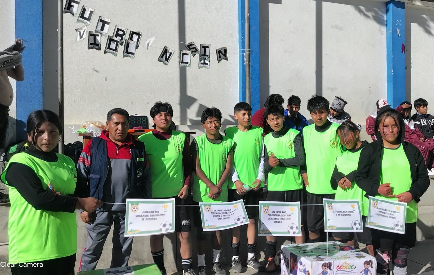 En el marco del proyecto “Comunidades libres de violencia – 2da fase”, implementado por CEMSE durante el mes de septiembre se llevó a cabo el campeonato intercolegial “Fútbol sin violencia” en los municipios de Santa Cruz (Plan 3000) y Palca, promoviendo la práctica deportiva como instrumento para la prevención de conductas violentas y la promoción de una competitividad sana en el entorno escolar. con el apoyo de Maria Marina Foundation.