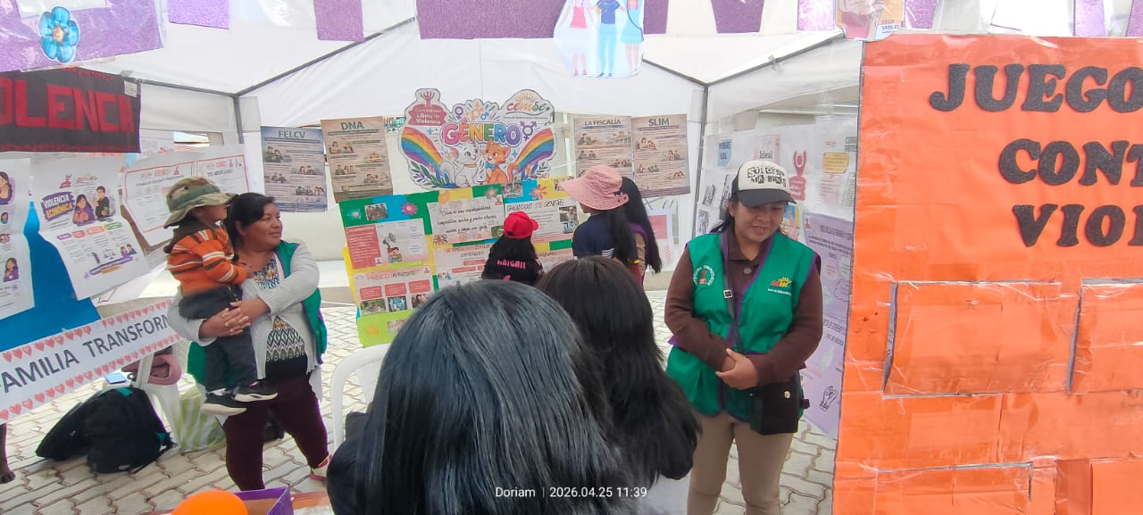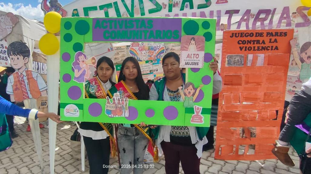 La participación activa, dinámica y propositiva de adolescentes y jóvenes fue uno de los aspectos más destacados de la feria, quienes, a través de carteles y consignas, expresaron su compromiso con la construcción de una sociedad libre de violencia, promoviendo un impacto comunitario progresivo. “La feria genera un espacio para que las madres de familia puedan informarse y actuar cuando suceden hechos de violencia.” Expresó la Sra. Angélica Chungara, activista comunitaria.