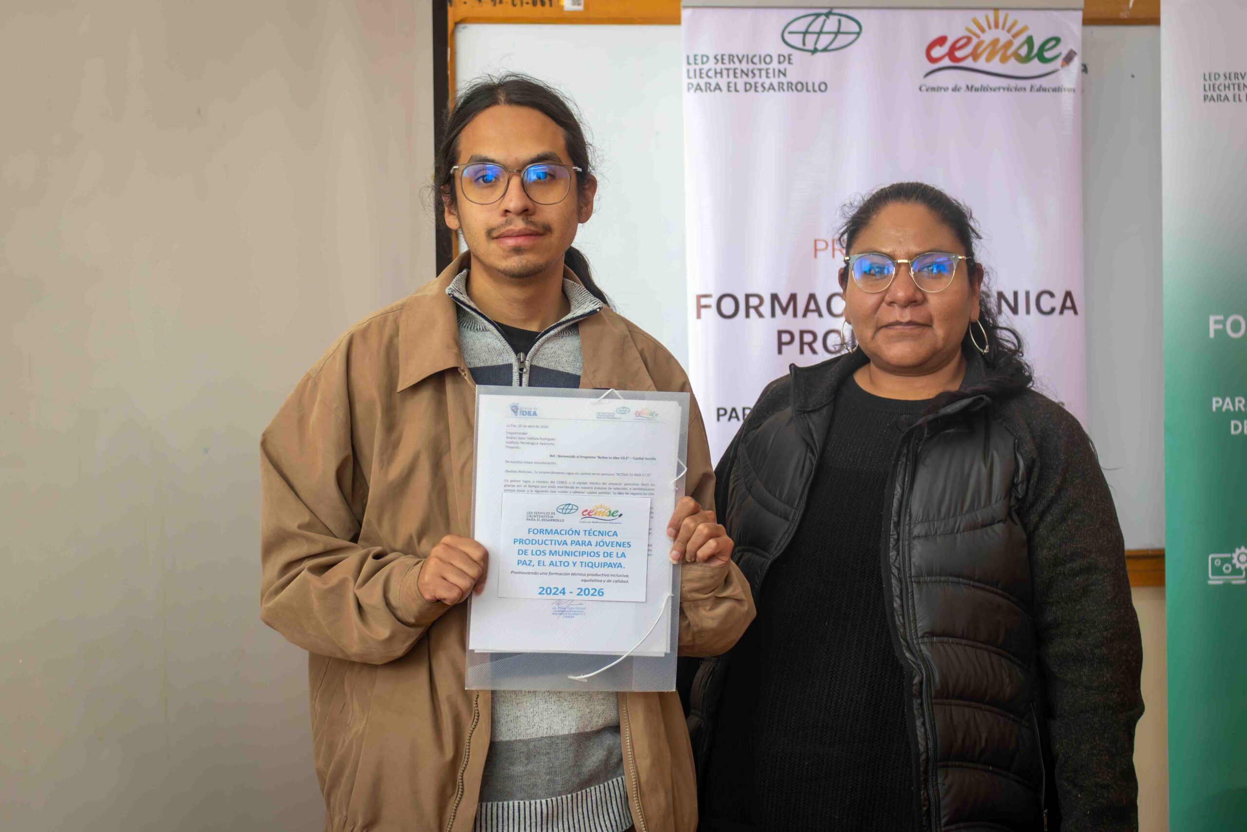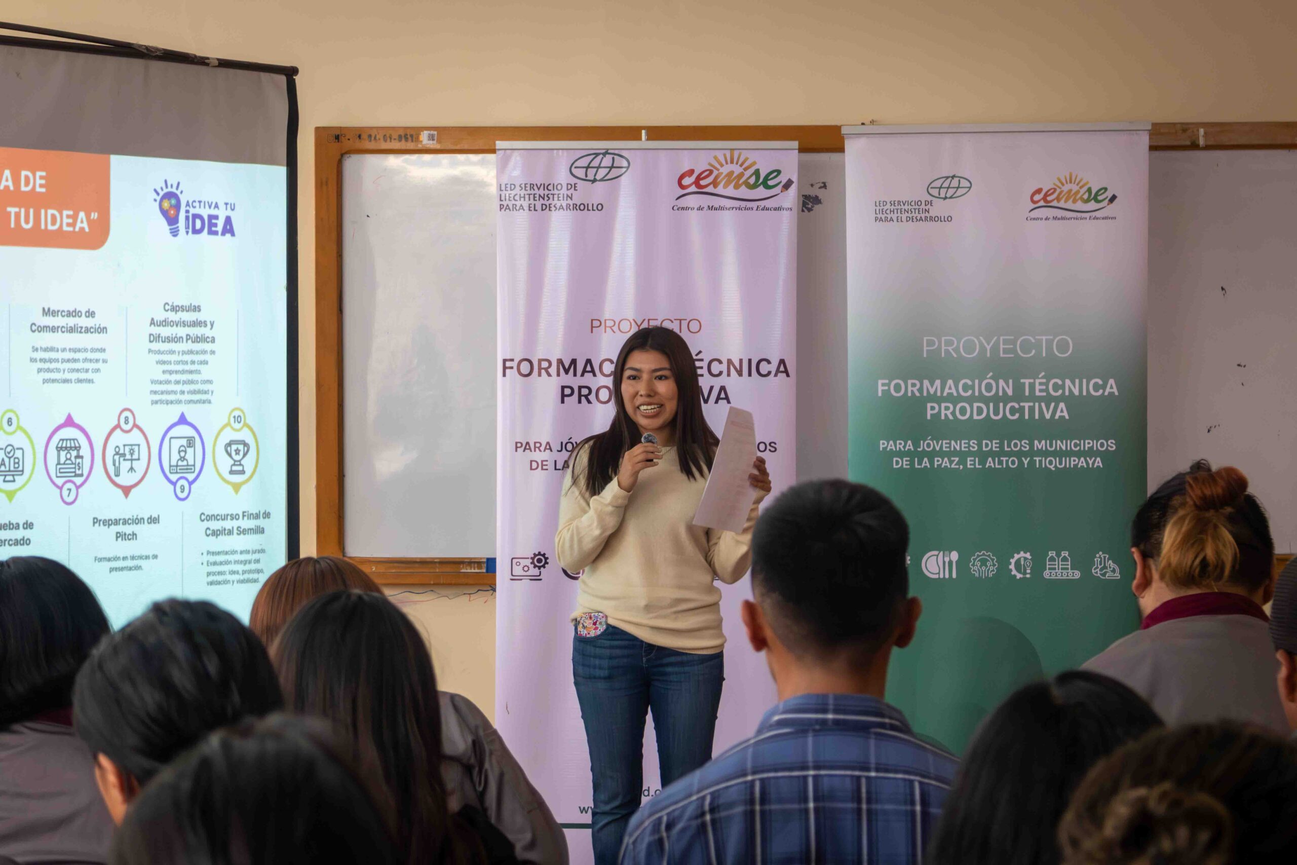 Con el objetivo de fortalecer las capacidades emprendedoras de jóvenes estudiantes, la Fundación Privada de Fieles Centro de Multiservicios Educativos (CEMSE) llevó a cabo la inauguración del programa “Activa tu Idea” v2.0, una iniciativa que forma parte del proyecto “Formación Técnica Productiva para Jóvenes de los Municipios de La Paz, El Alto y Tiquipaya”, desarrollado con el apoyo del Servicio de Liechtenstein para el Desarrollo (LED).