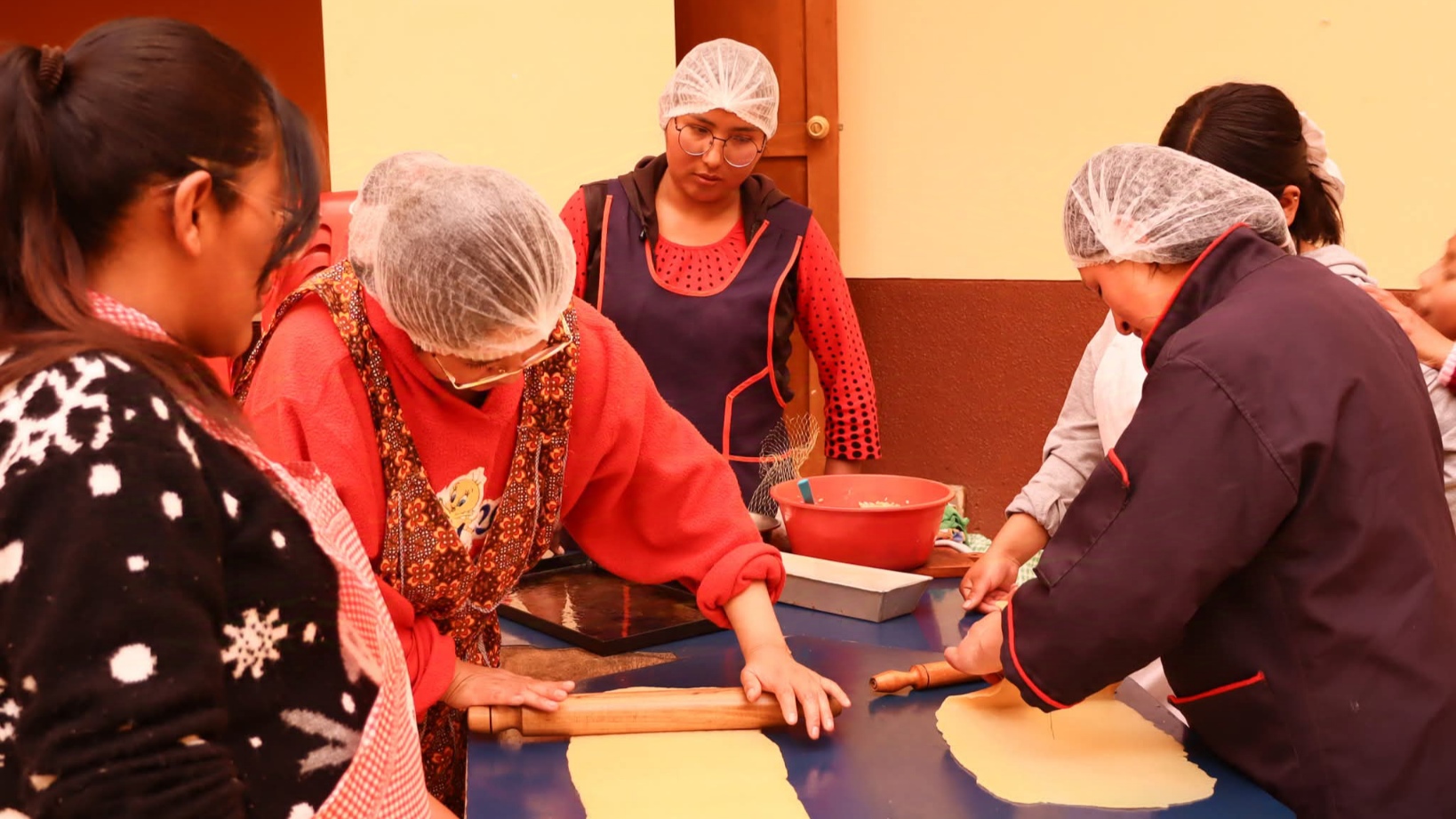 En el punto de atención Huayna Potosí se desarrolló un curso corto de panadería impartido por la chef Roslyn, quien compartió su experiencia y talento con todas las familias asistentes. A lo largo de cuatro sesiones, las y los participantes aprendieron a preparar una variedad de productos, como rollos, empanadas, queques tradicionales y nativos, además de panes clásicos y pizzas artesanales. Este espacio no solo impulsó el aprendizaje técnico, sino también la convivencia, el trabajo colaborativo y la creación de momentos significativos dentro de la comunidad. “Me gustó mucho este curso, espero haya más”, expresó una de las participantes, María.