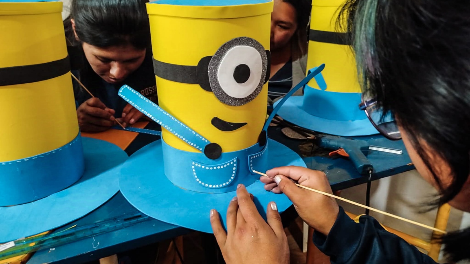 Las capacitaciones continuaron con la creación de coloridos sombreros de cumpleaños elaborados en goma eva, donde se exploraron combinaciones de colores y técnicas accesibles para obtener resultados llamativos. El ciclo formativo concluyó con la elaboración de ramos florales en goma eva, una actividad que despertó entusiasmo y permitió visibilizar el talento y dedicación de las familias participantes.