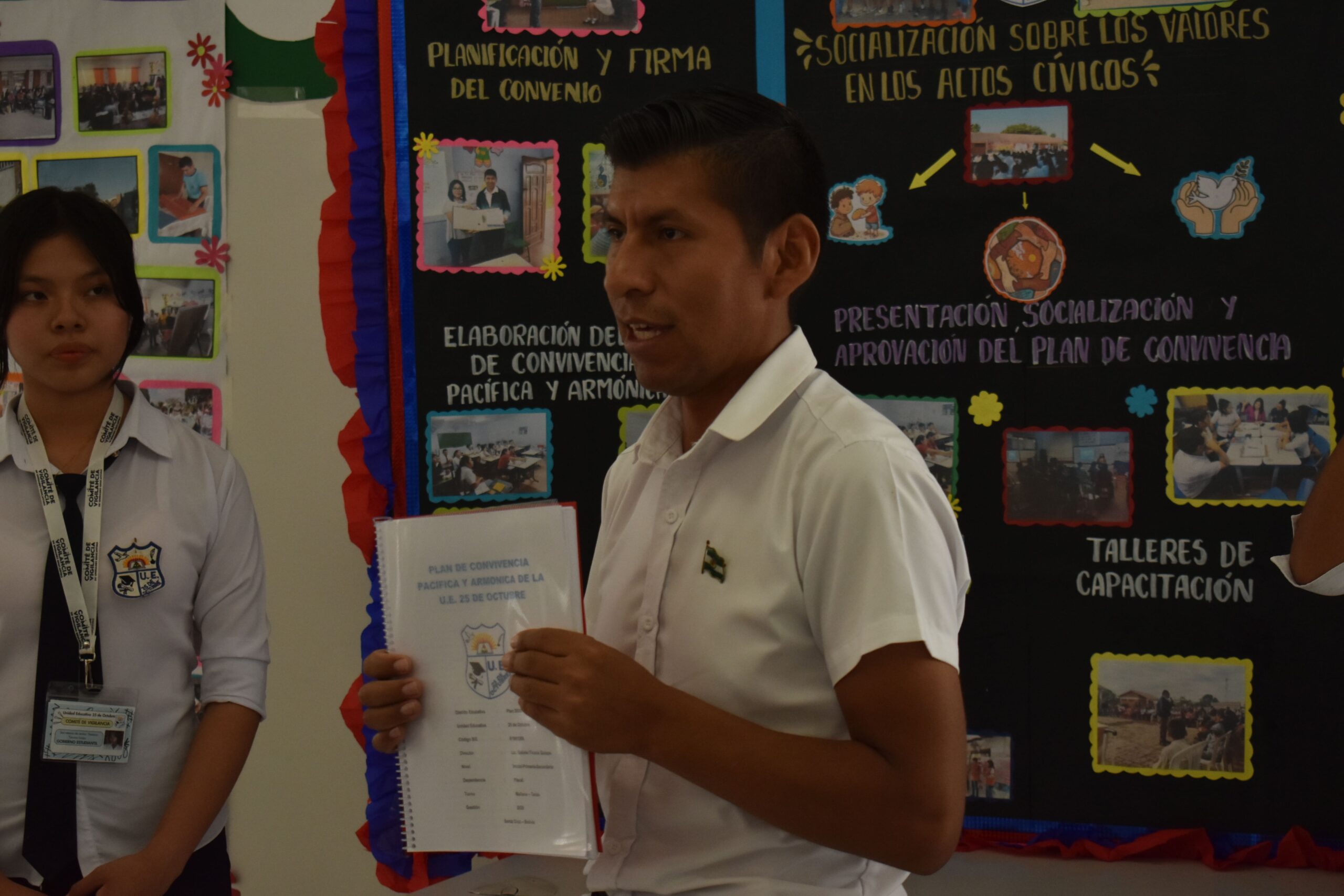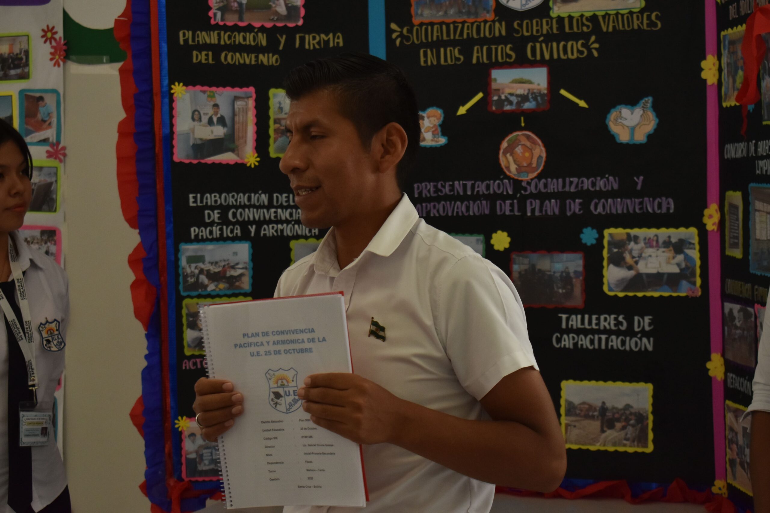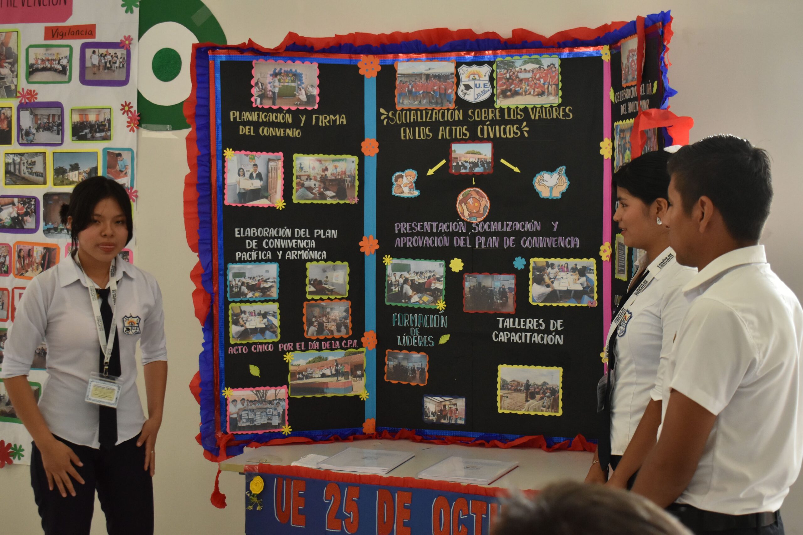 El evento contó con la presencia de la Defensoría de la Niñez y Adolescencia del municipio de Santa Cruz, representantes de la Plataforma de Prevención de Embarazos en Adolescentes, la Federación de Estudiantes de Secundaria, así como directores y directoras de otras unidades educativas del Plan 3000, quienes reconocieron el compromiso de las escuelas participantes en la construcción de espacios educativos más seguros y armónicos.