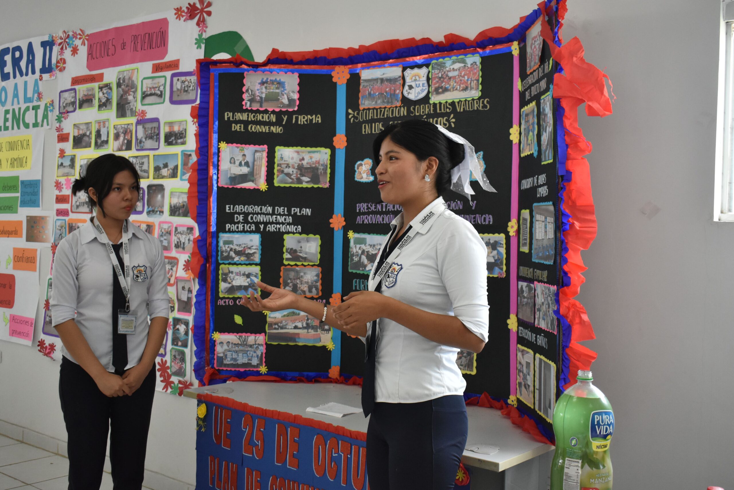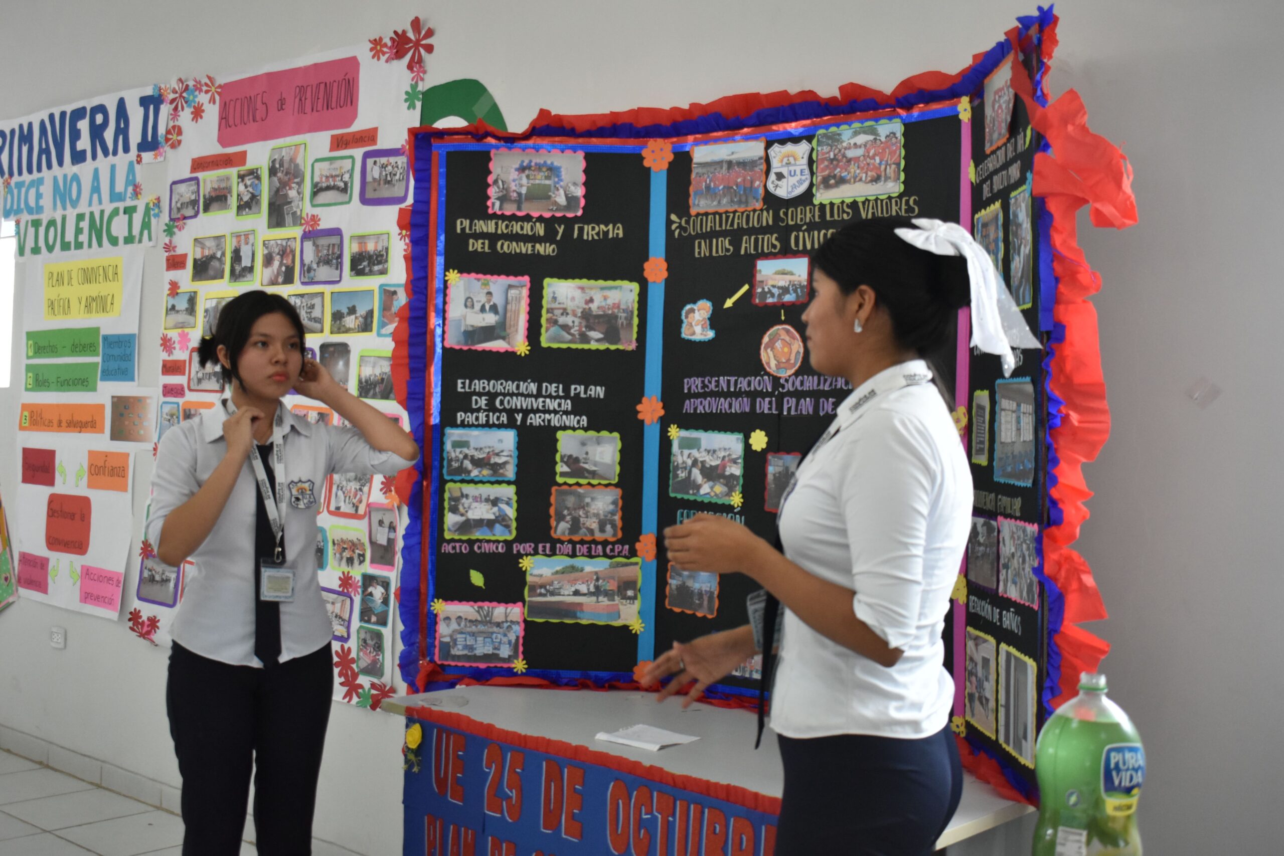 Durante la feria, las unidades educativas participantes compartieron sus experiencias, avances y estrategias concretas para prevenir la violencia y fomentar una cultura de paz en sus establecimientos. Entre las buenas prácticas destacaron actividades de sensibilización, mediación escolar, fortalecimiento de la comunicación y promoción de valores de convivencia.