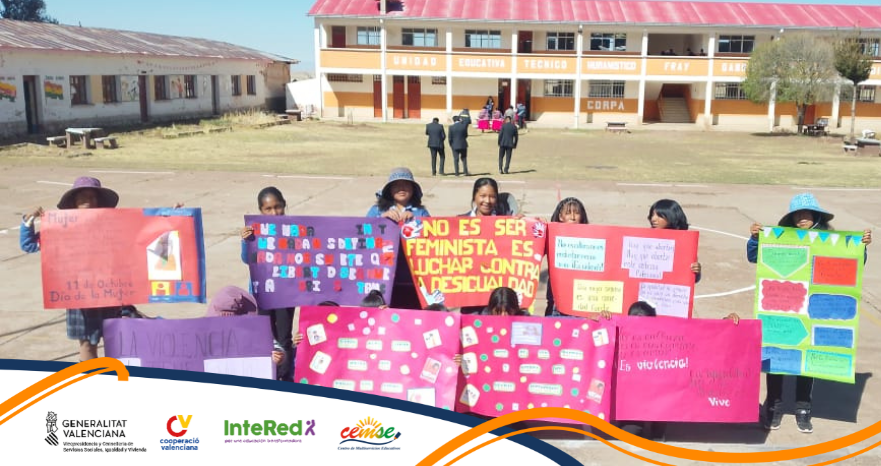 En el marco del proyecto “Promoviendo el derecho de niñas, niños y adolescentes de pueblos indígena originarios campesinos a educarse en su propia lengua, cultura y con igualdad de género en un contexto de recuperación justa post-pandemia Covid-19 en 6 regiones de Bolivia / Región Aymara – Uru”, el Centro de Multiservicios Educativos (CEMSE) acompañó la actividad del plan de acción de las gestoras comunitarias de la Unidad Educativa Fray Gabriel María Landiniquienes organizaron una significativa marcha en conmemoración al Día de la Mujer Boliviana, con el apoyo de Generalitat Valenciana e InteRed.