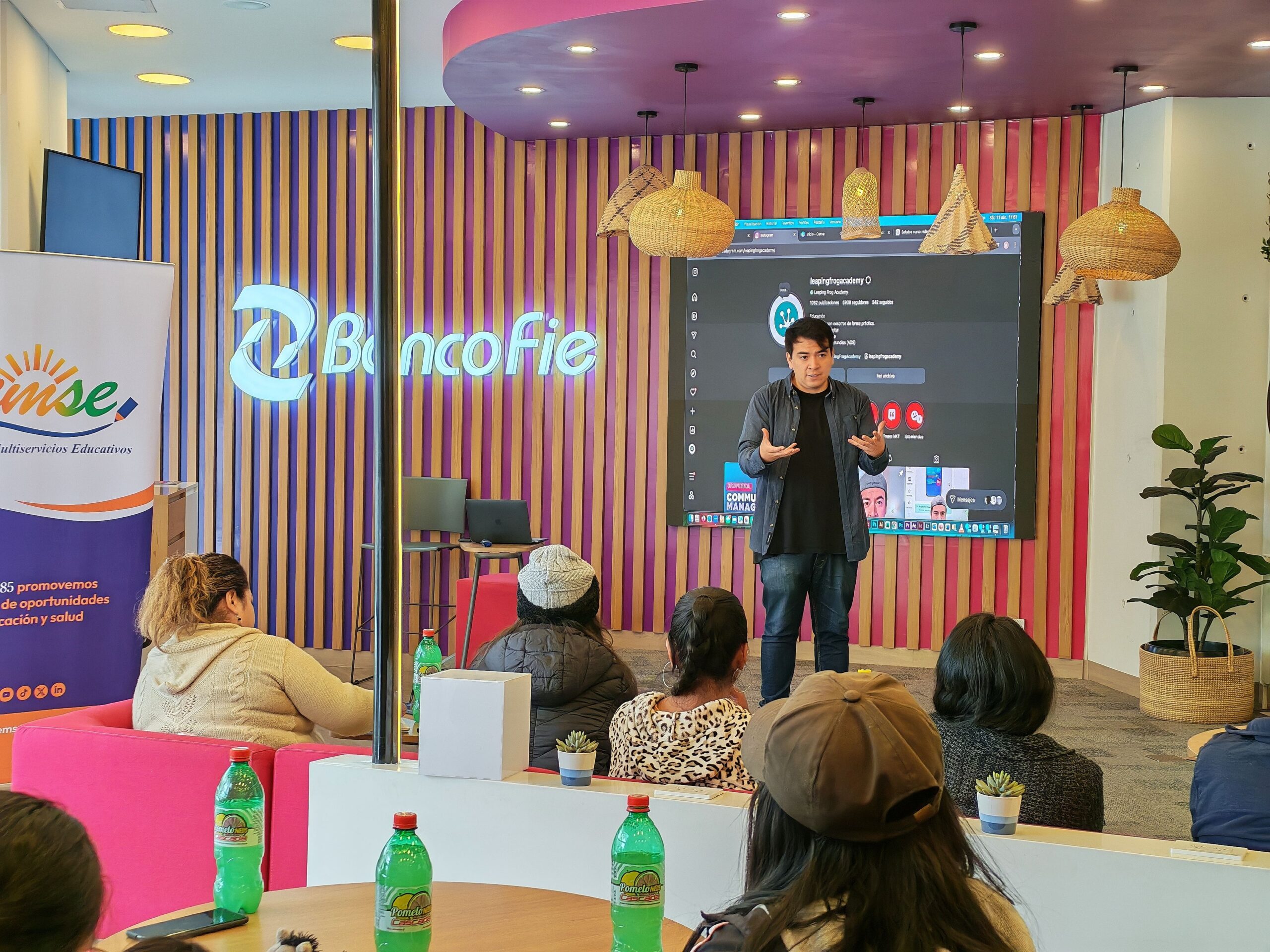 El taller fue facilitado por Rodrigo Ocampo, especialista en marketing digital y CEO de Leaping Frog Academy, quien brindó herramientas prácticas para el uso estratégico de redes sociales como Instagram y TikTok, orientadas a mejorar la visibilidad, atraer clientes y fortalecer la identidad de marca de los emprendimientos.