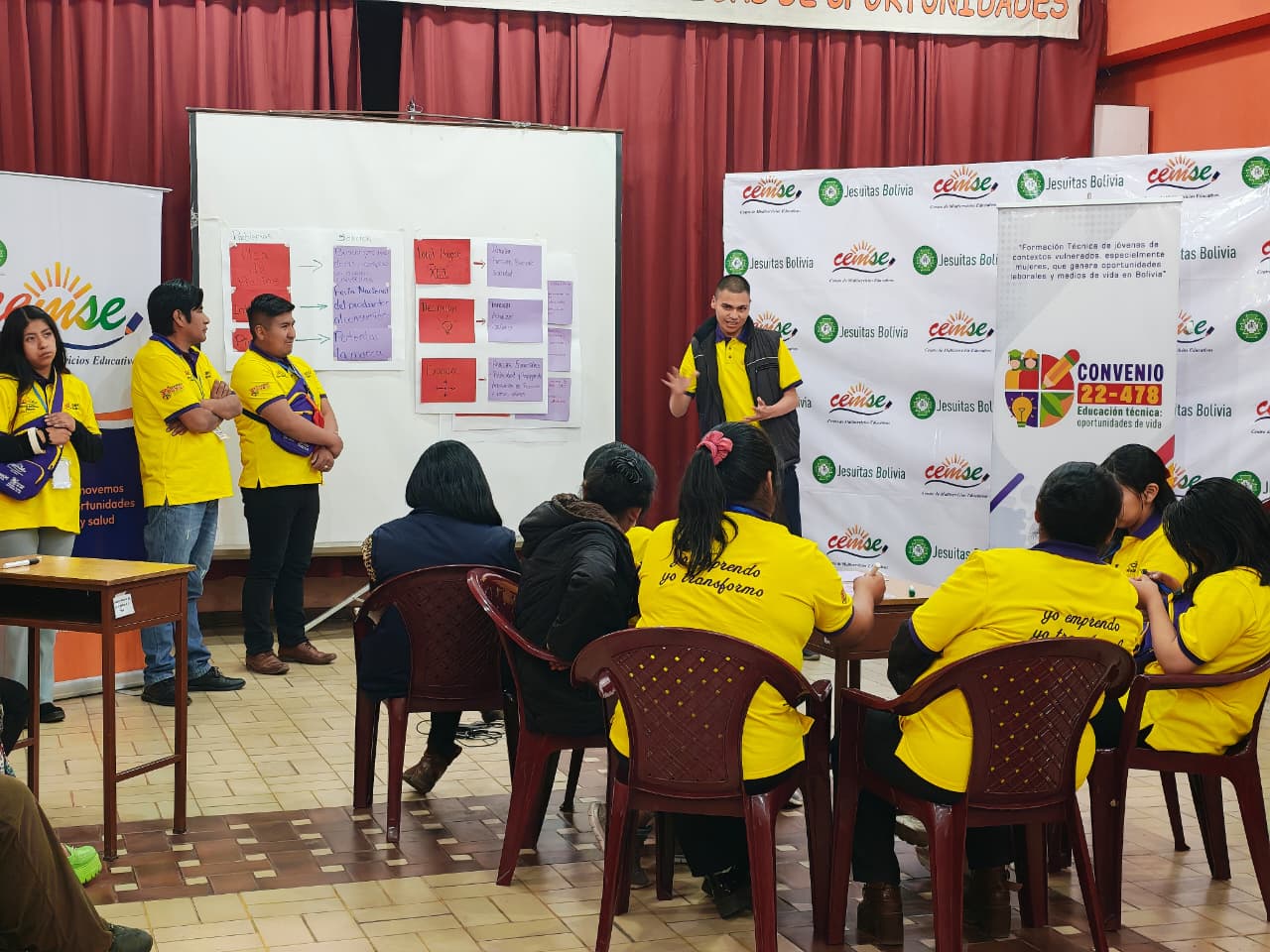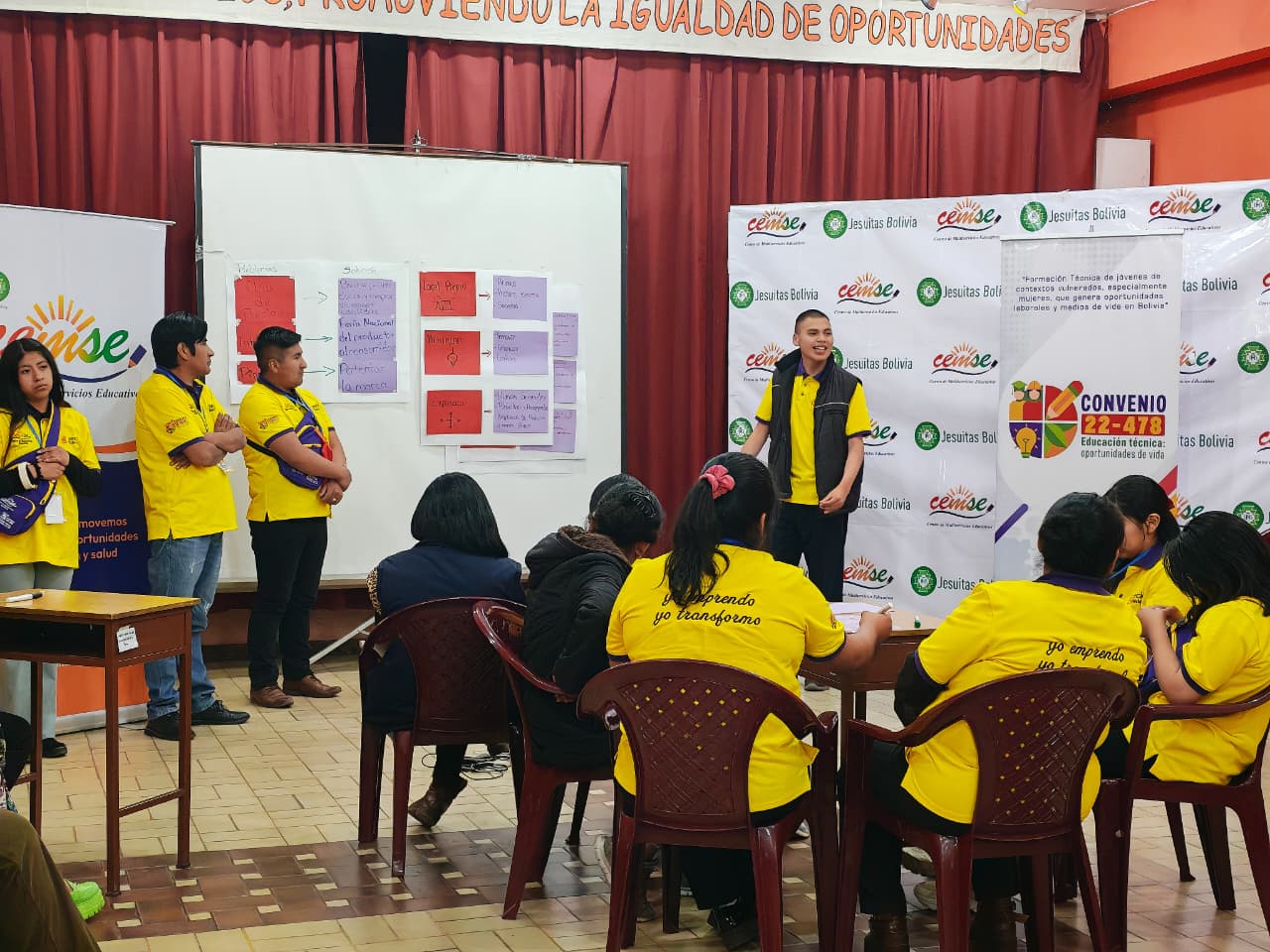 En el marco del proyecto “Formación técnica de jóvenes en situación de vulnerabilidad, especialmente mujeres, que generan oportunidades laborales y medios de vida en Bolivia – Convenio 22-478” financiado por la Agencia de Cooperación Española, en octubre se llevó a cabo el Encuentro de Intercambio de bpara Emprendedores en las instalaciones del CEMSE La Paz. El evento contó con la participación de beneficiarios del capital semilla de las gestiones 2024 y 2025, provenientes de los municipios de La Paz, El Alto y Cochabamba.