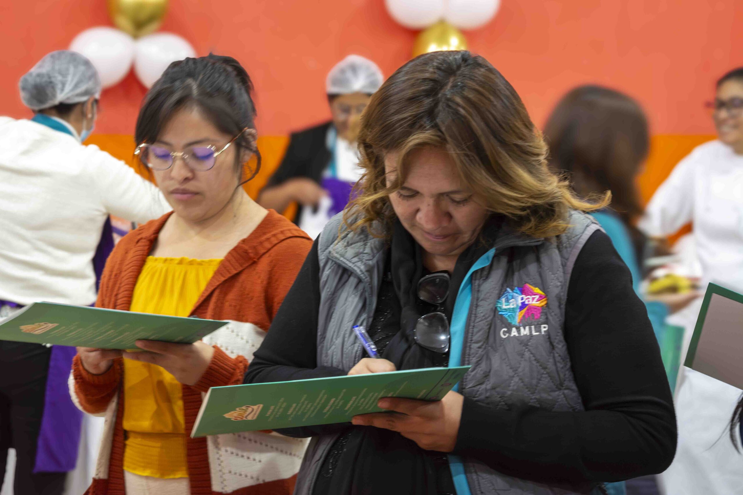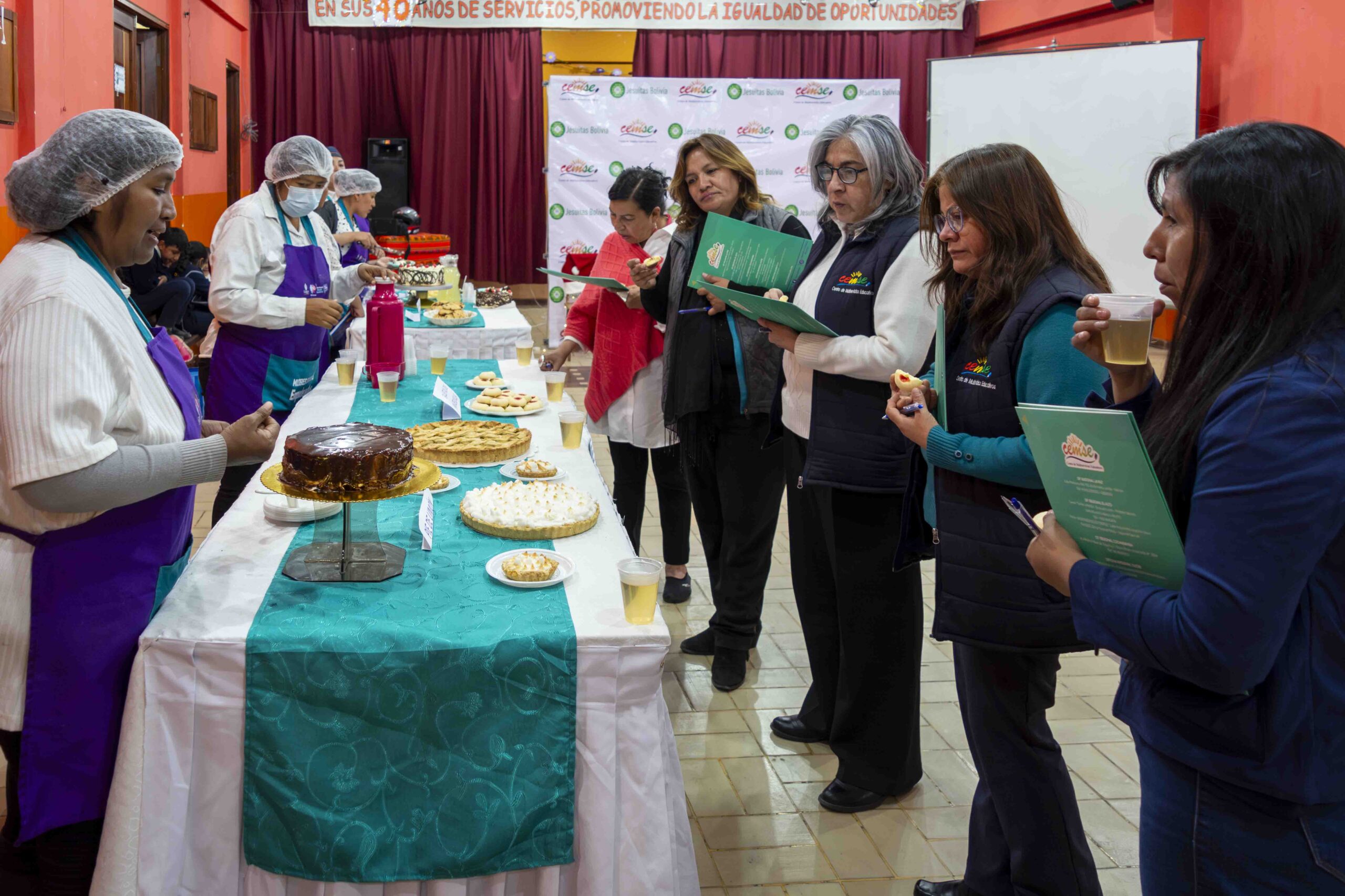 Como evaluación final, cada grupo elaboró una torta que fue presentada ante representantes del Instituto de la Mujer del GAMLP, quienes participaron como parte del jurado evaluador. Asimismo, se realizó una exposición general de productos finales que evidenció el avance y compromiso de las mujeres participantes.