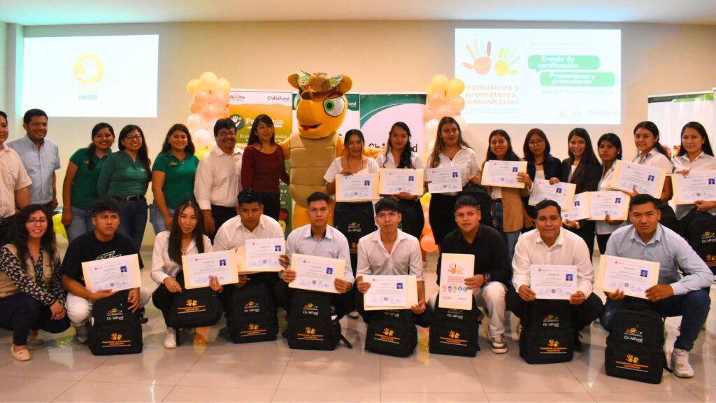 •Con el apoyo de ChildFund•El Centro de Educación Permanente Radiofónico Fe y Alegría, en colaboración con ChildFund - CEMSE, llevó a cabo el 23 de abril de la presente gestión, la certificación de 23 Promotoras y Promotores Comunitarios por los Derechos de la Infancia, Niñez, Adolescencia y Juventud en Santa Cruz de la Sierra. ...