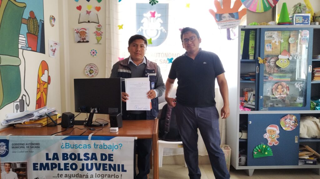 •Con el apoyo de MariaMarina Foundation•Este jueves 6 de marzo la oficina de la Bolsa de Empleo del Gobierno Autónomo Municipal Sacaba recibió como parte del equipamiento un estante de madera, una mesa y un equipo de cómputo completo, compuesto por una CPU, monitor, teclado, mouse, parlantes y un extensor de red. Esta dotación ...