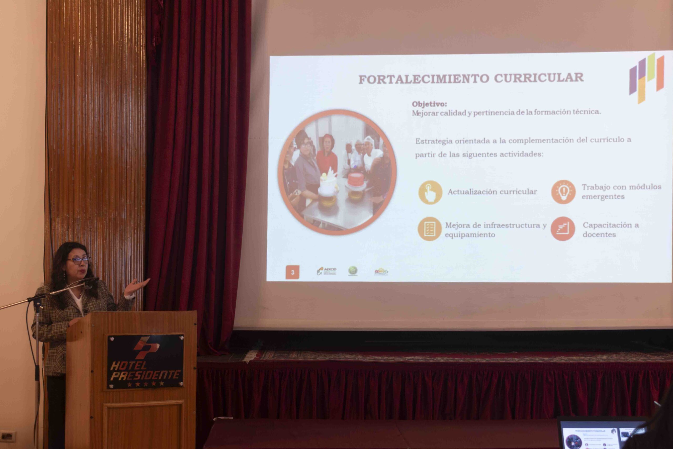 “Estamos en el cierre del proyecto ‘Sembrando Educación, Cosechando Futuro’, financiado por AEXCID y ejecutado junto a seis CEAs de La Paz y El Alto. Este proceso ha fortalecido la formación técnica mediante apoyo curricular, equipamiento, infraestructura, emprendimiento, capacitación docente y la habilitación de espacios seguros, beneficiando a más de 2.000 estudiantes. Hoy presentamos los resultados” dijo Claudia Arandia, Coordinadora de Proyectos CEMSE.