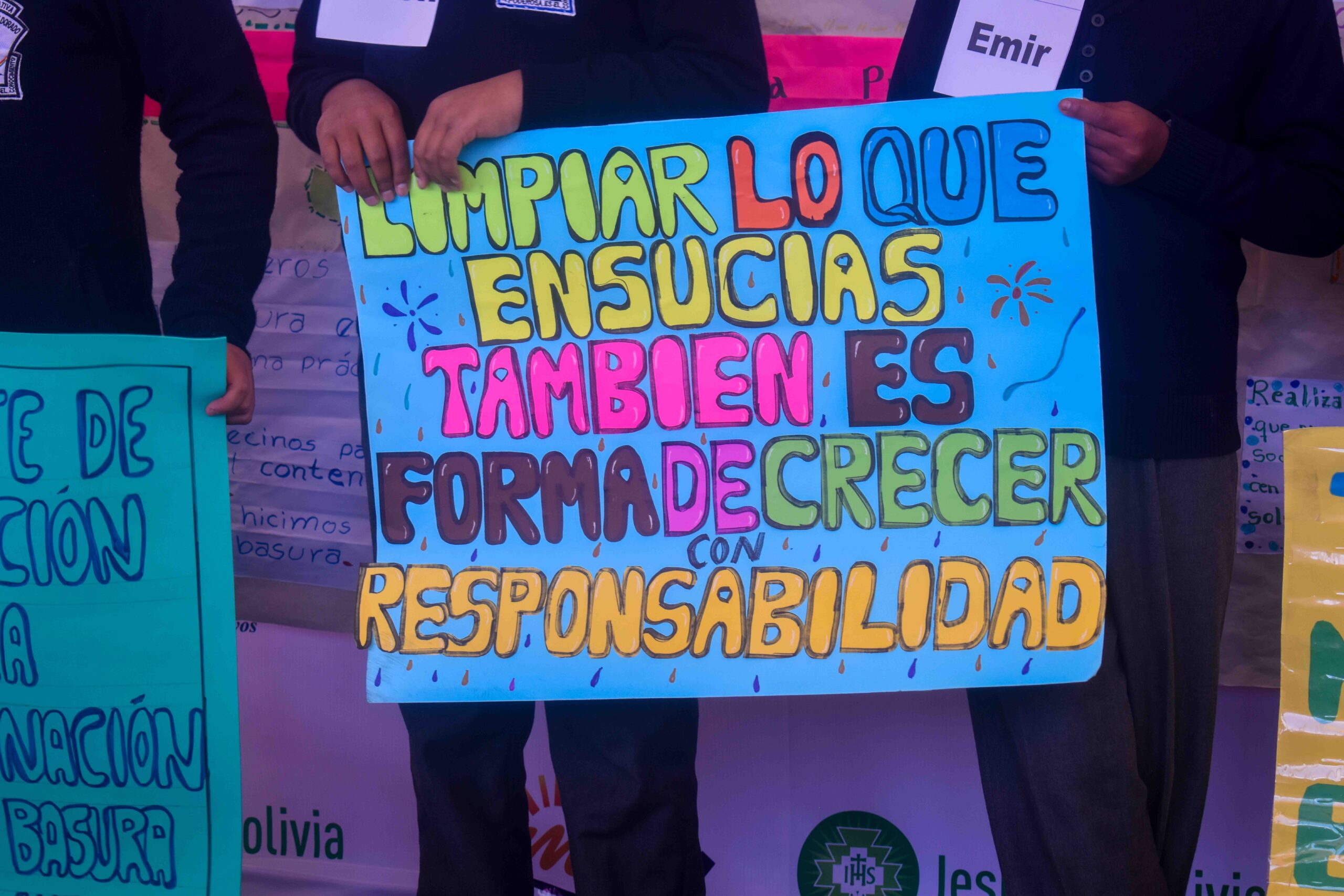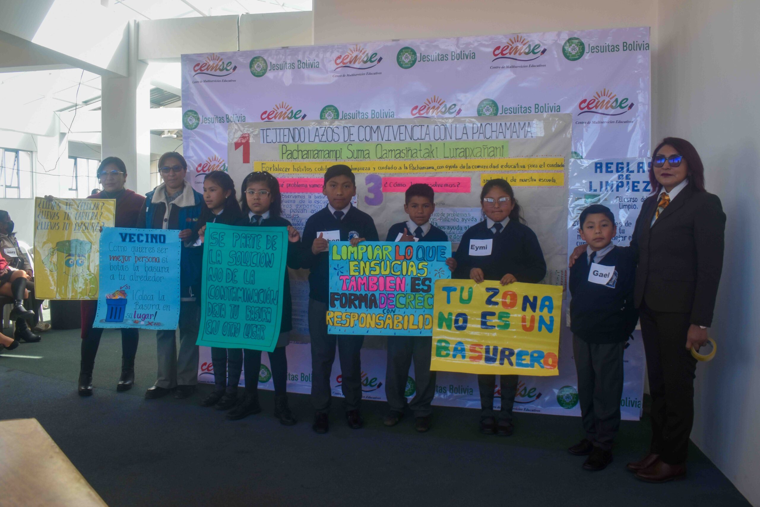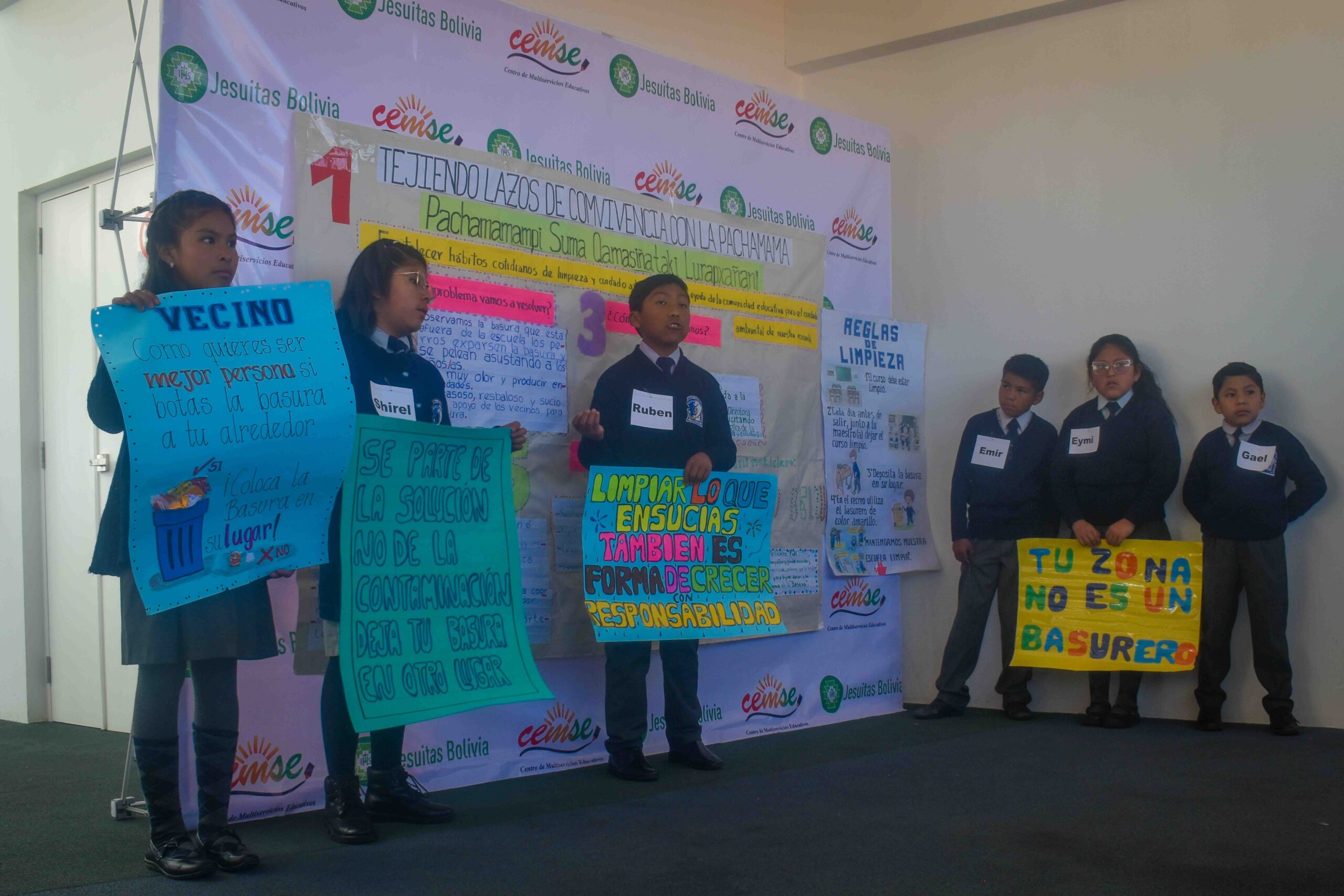 ·        Unidad Educativa Mercedes Belzu de Dorado A. Con el proyecto: “Tejiendo lazos de convivencia con la Pachamama” Con este proyecto, estudiantes de la U.E. Mercedes Belzu promueven el manejo adecuado de los residuos sólidos en su entorno escolar, trabajando en alianza con la Alcaldía de El Alto para la instalación de contenedores de basura. Además, crearon un mini noticiero para sensibilizar a la comunidad educativa y a los vecinos sobre la importancia de la limpieza y el respeto por el medio ambiente.