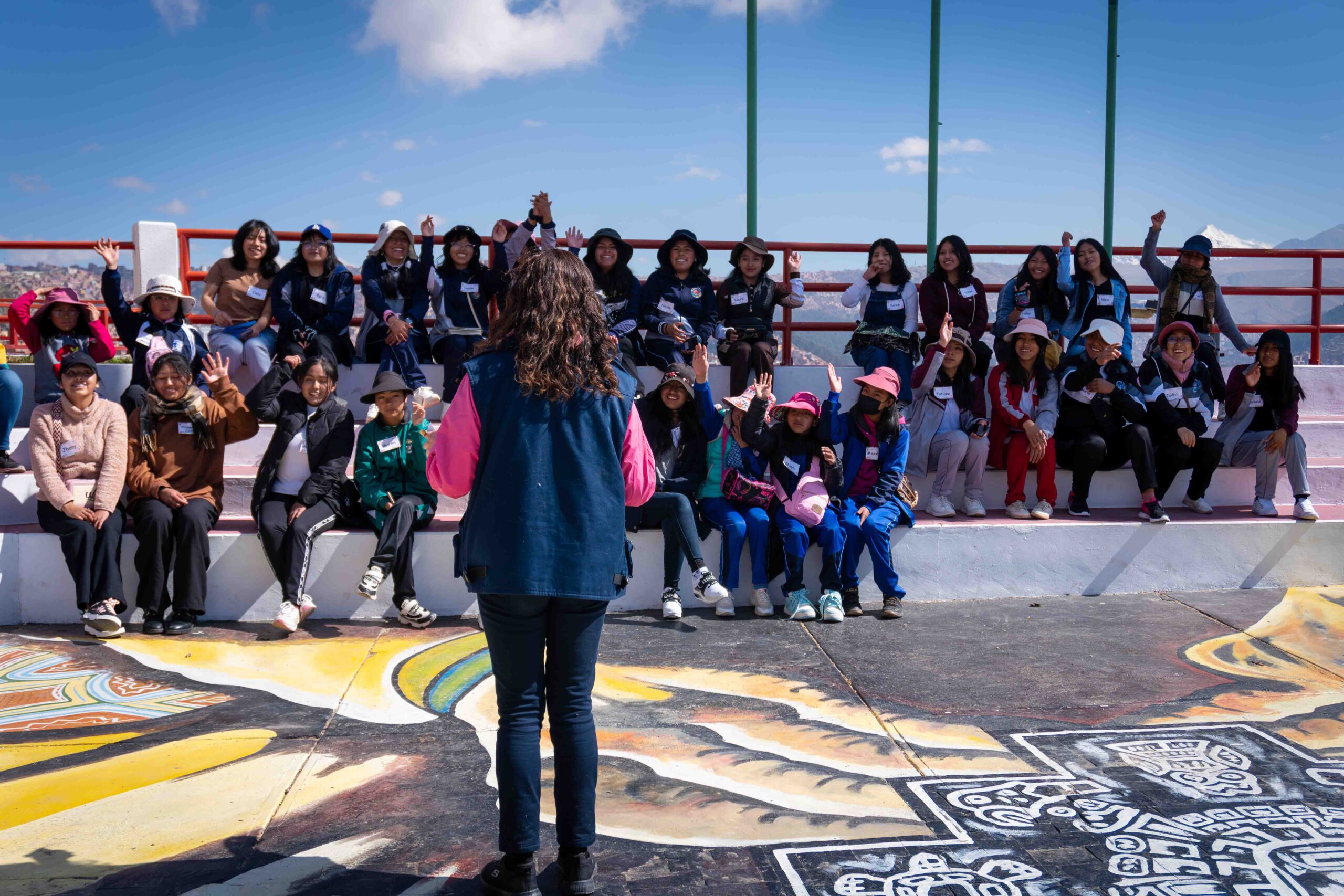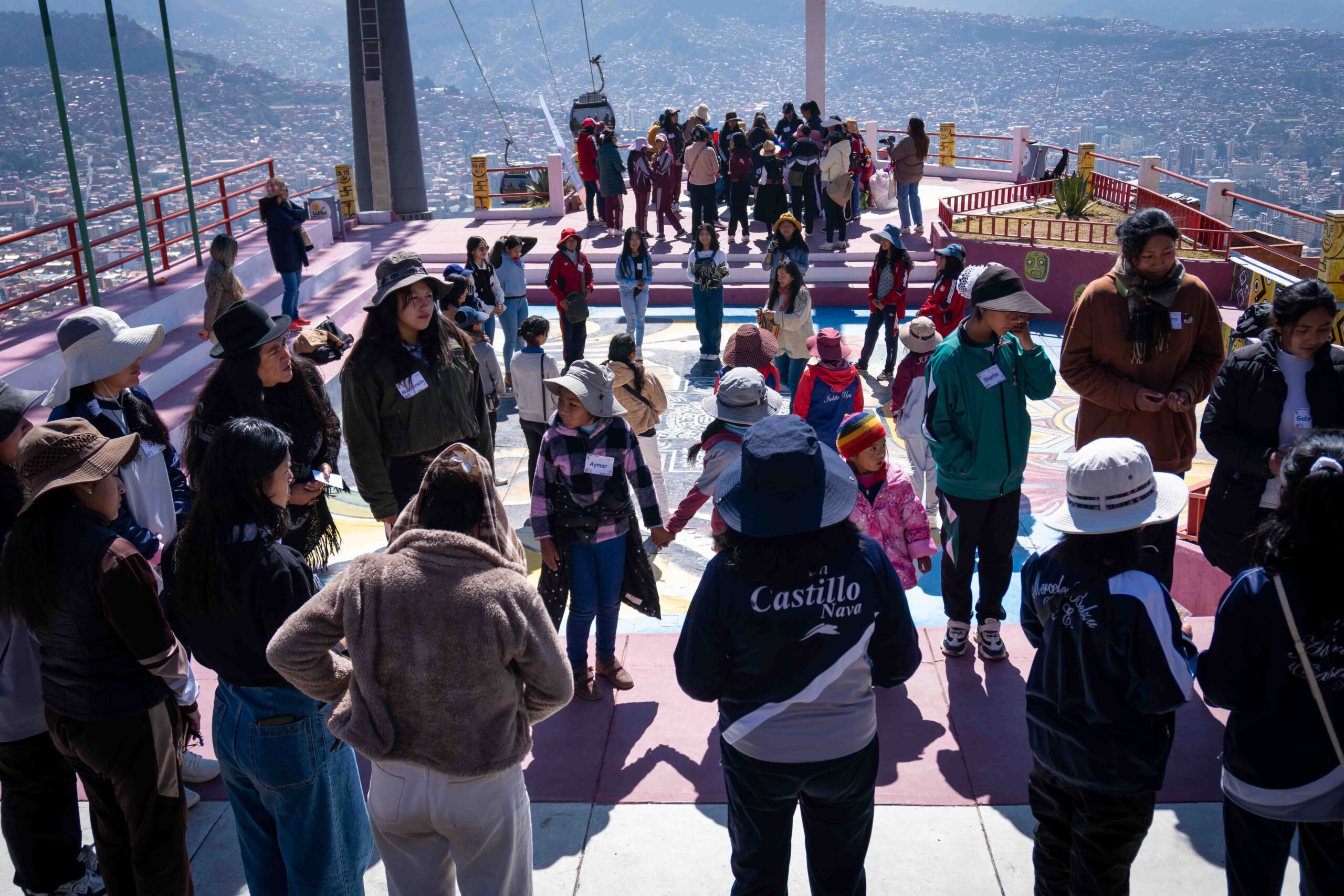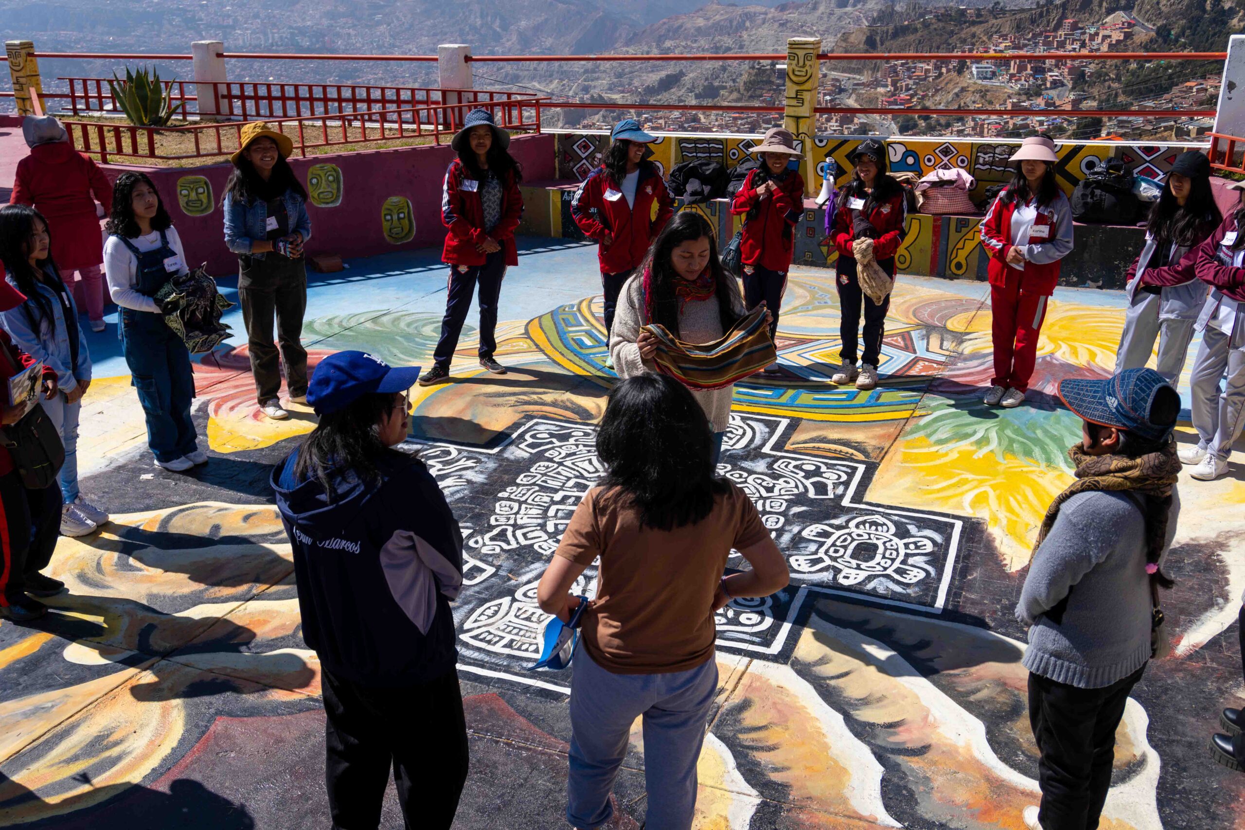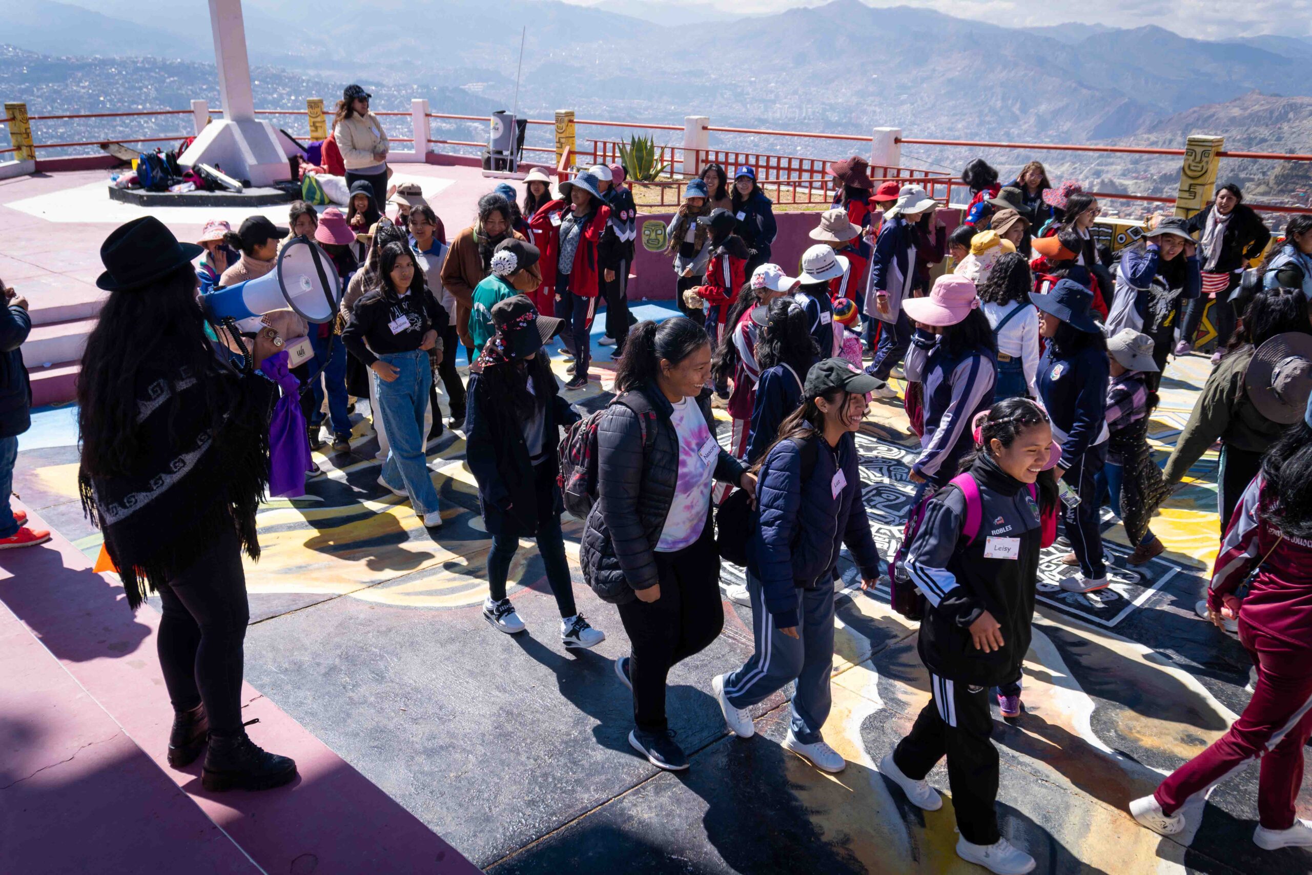 Durante dos jornadas, las participantes se adentraron en una experiencia pedagógica vivencial que articuló los cinco campos de acción y lucha del feminismo comunitario: cuerpo, territorio, memoria, movimiento y tiempo. La ruta comenzó en el mirador Niño Kollo, lugar simbólico de resistencia de la revolución indígena, donde las niñas conectaron con sus raíces y recibieron la bendición espiritual de los apus Illimani, Huayna Potosí y Mururata. A través del intercambio de illas, figuras tradicionales que simbolizan protección y buen augurio, las niñas iniciaron una travesía cargada de significado, memoria y poder ancestral.