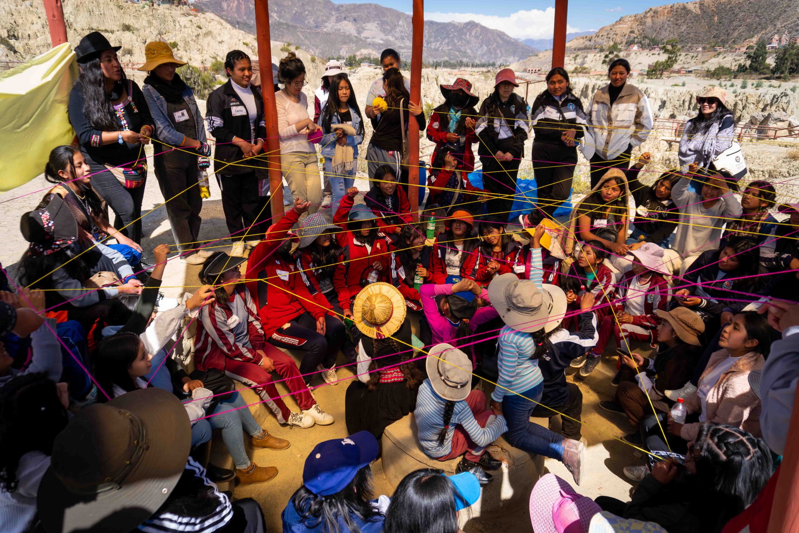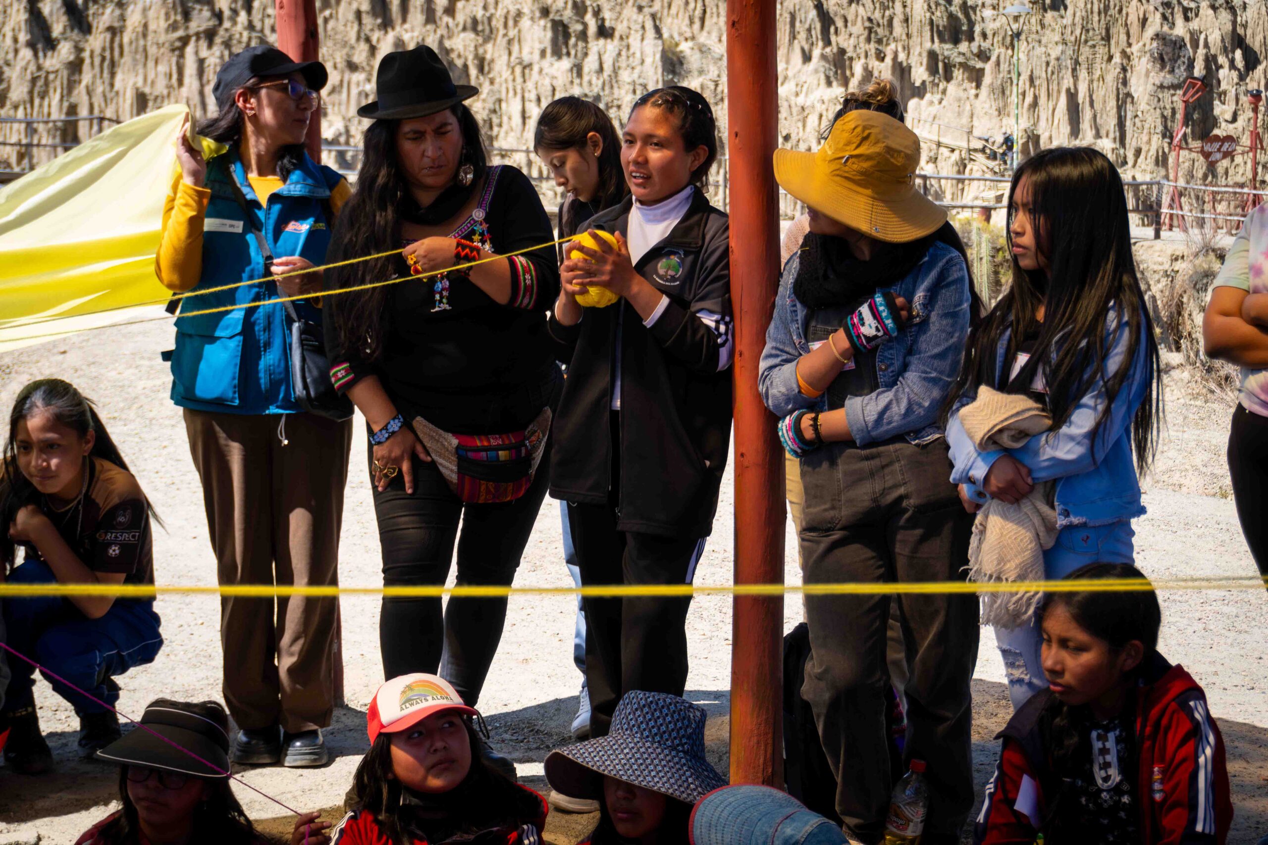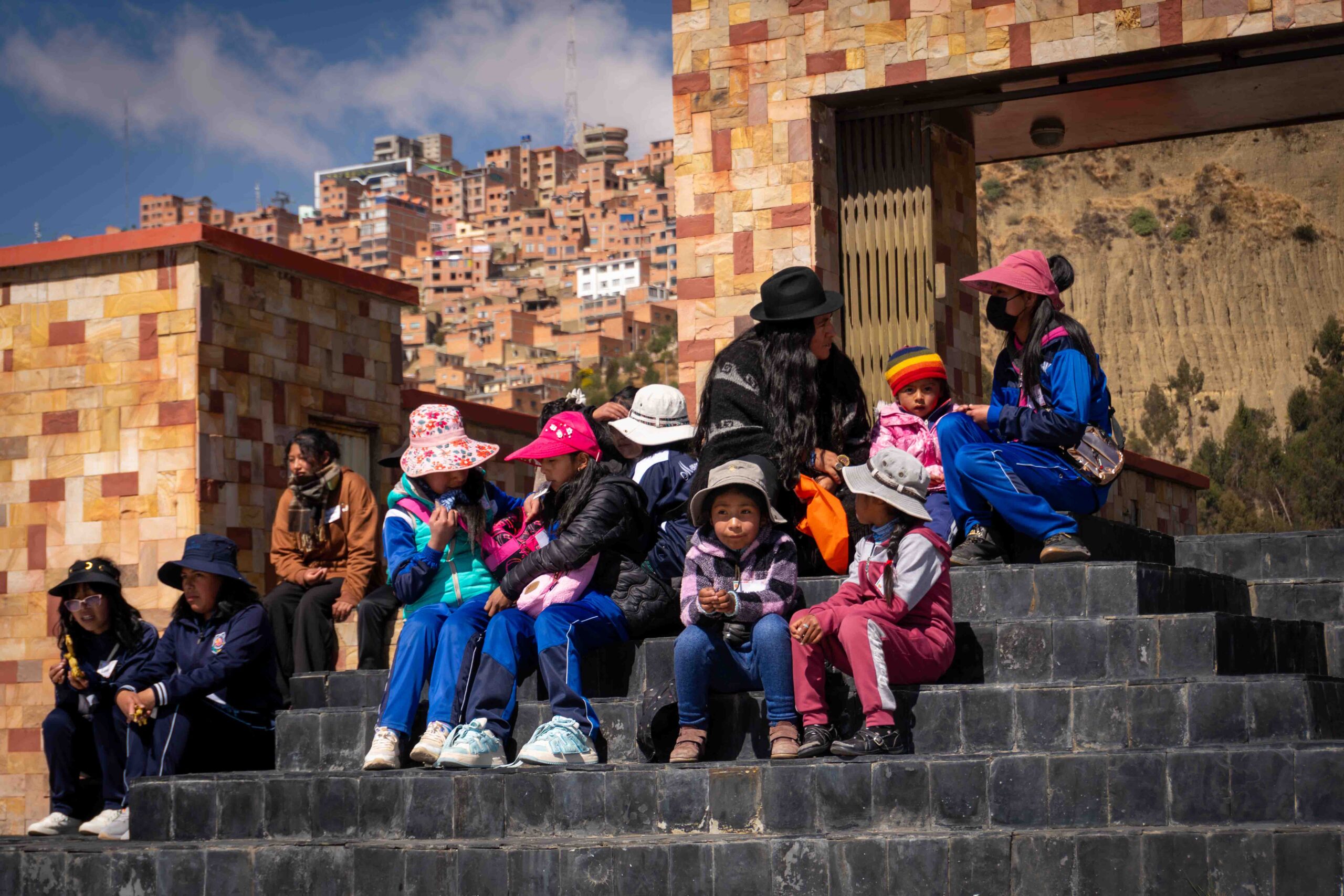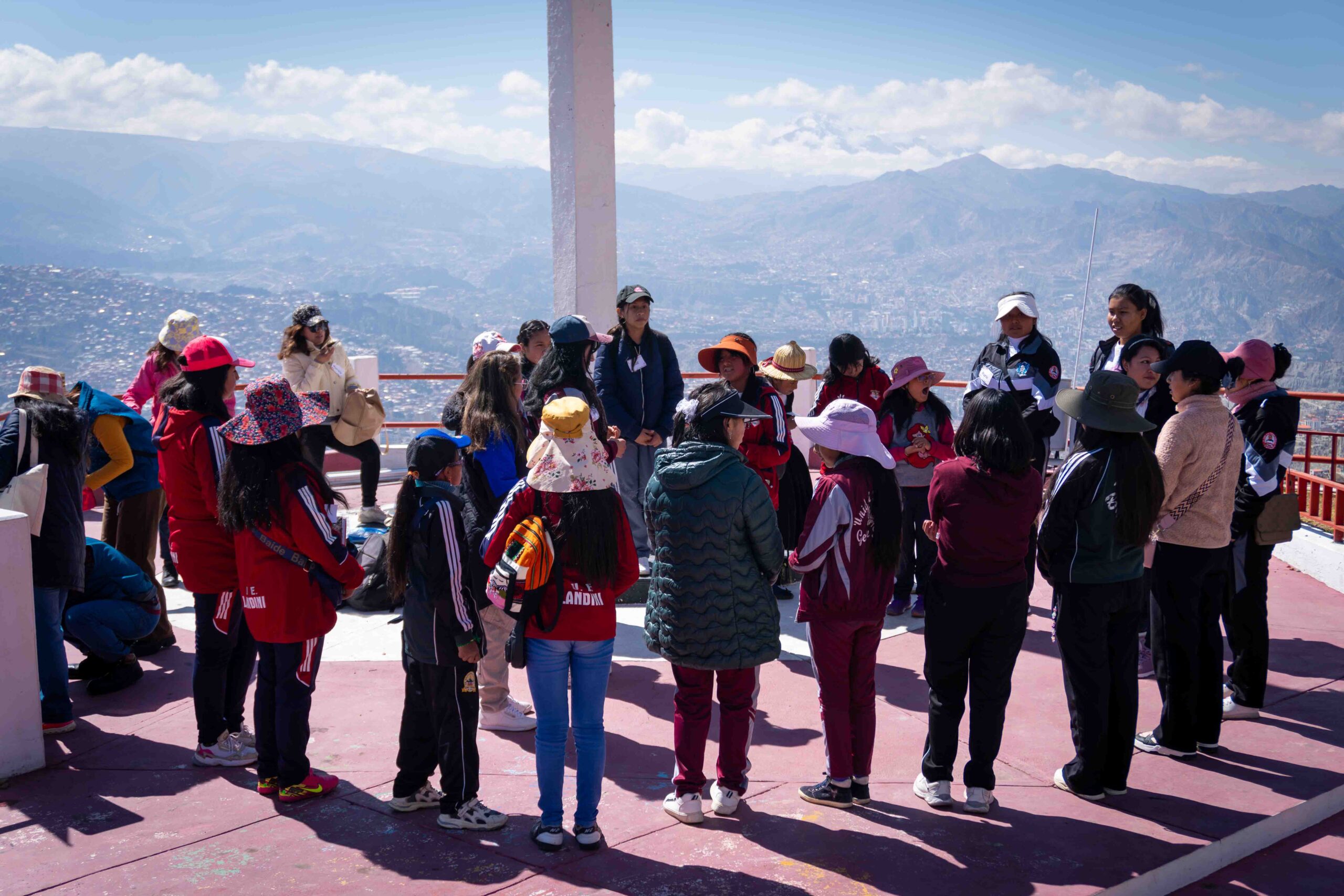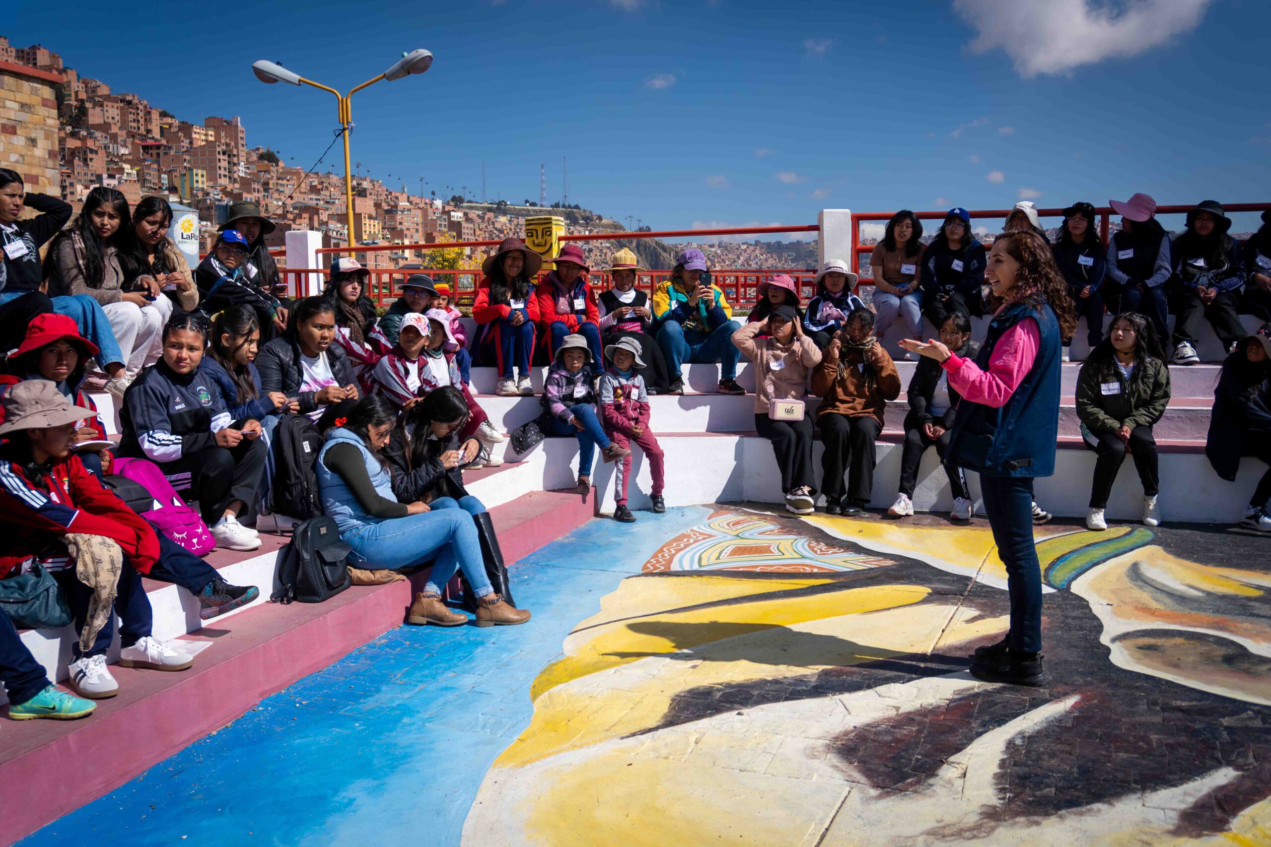 Durante dos jornadas, las participantes se adentraron en una experiencia pedagógica vivencial que articuló los cinco campos de acción y lucha del feminismo comunitario: cuerpo, territorio, memoria, movimiento y tiempo. La ruta comenzó en el mirador Niño Kollo, lugar simbólico de resistencia de la revolución indígena, donde las niñas conectaron con sus raíces y recibieron la bendición espiritual de los apus Illimani, Huayna Potosí y Mururata. A través del intercambio de illas, figuras tradicionales que simbolizan protección y buen augurio, las niñas iniciaron una travesía cargada de significado, memoria y poder ancestral.