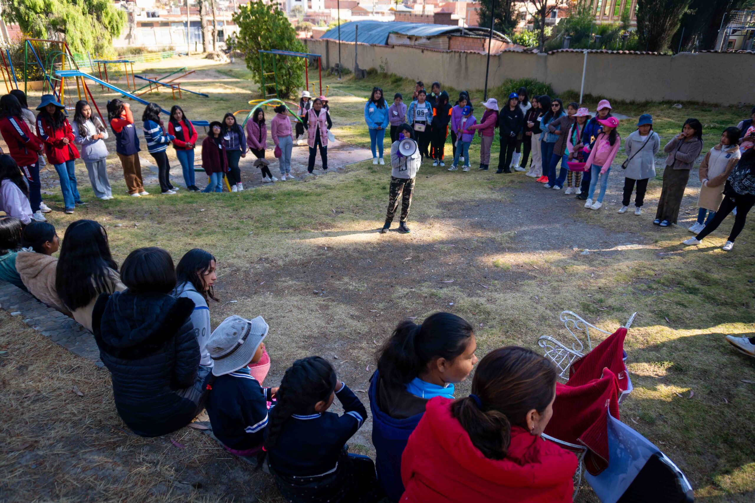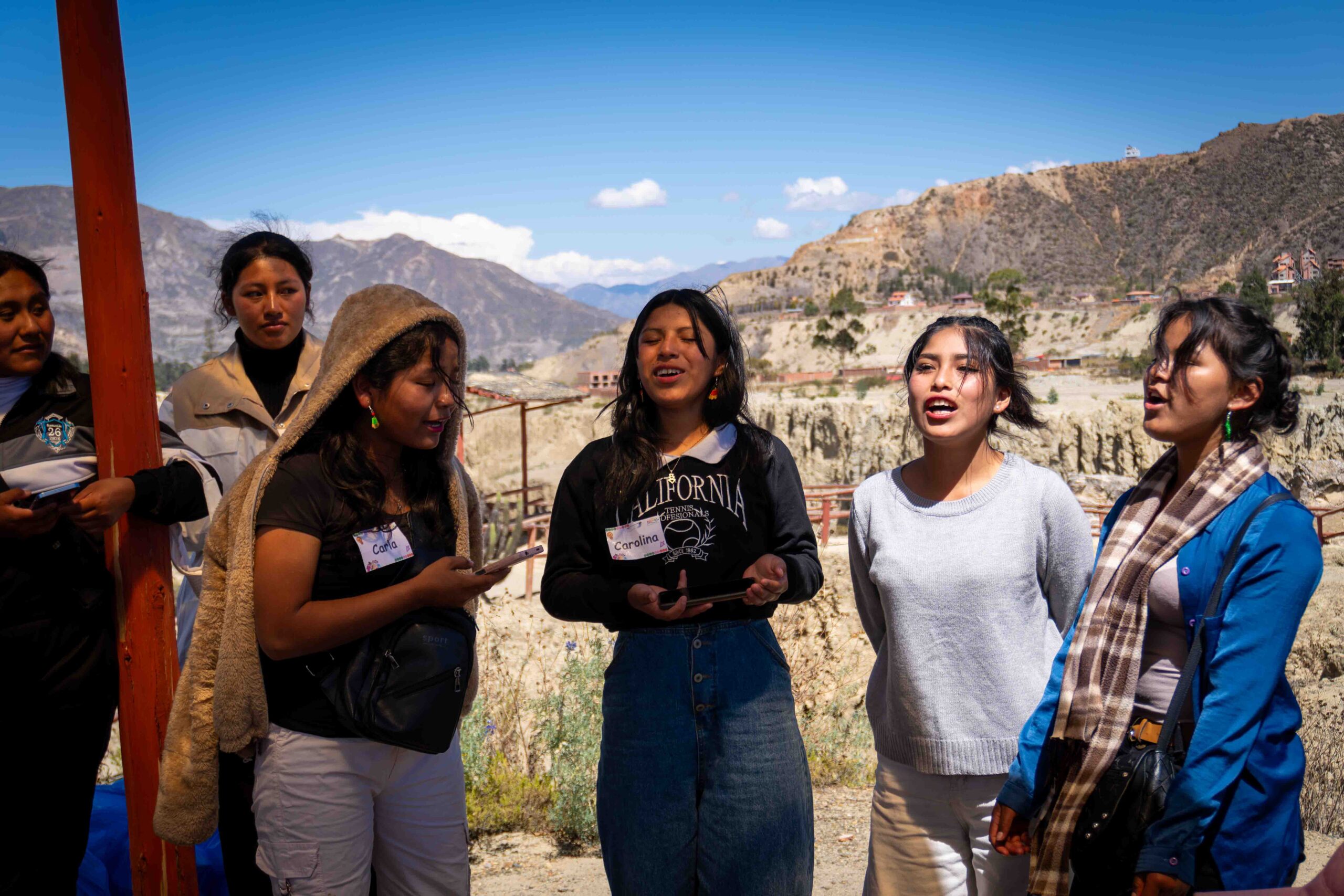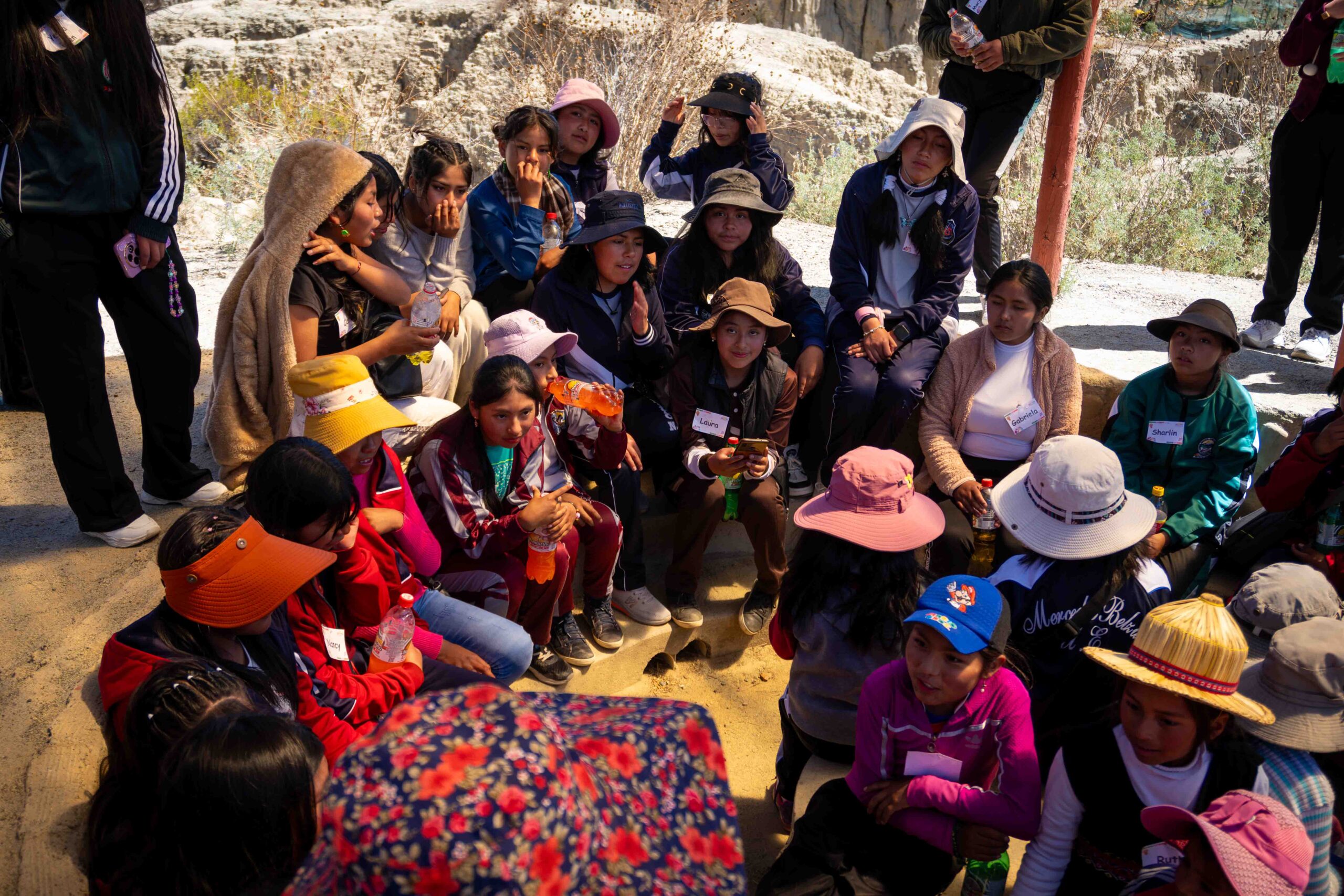 El paso por Achocalla permitió reflexionar sobre el tiempo, visibilizando cómo las mujeres destinan gran parte de sus días al trabajo de cuidado, al empleo remunerado y a la organización comunitaria, dejando poco espacio para sí mismas. Esta toma de conciencia motivó a las niñas a plantear nuevas formas de distribuir las responsabilidades y a exigir el derecho a vivir libres, sanas ycon dignidad.