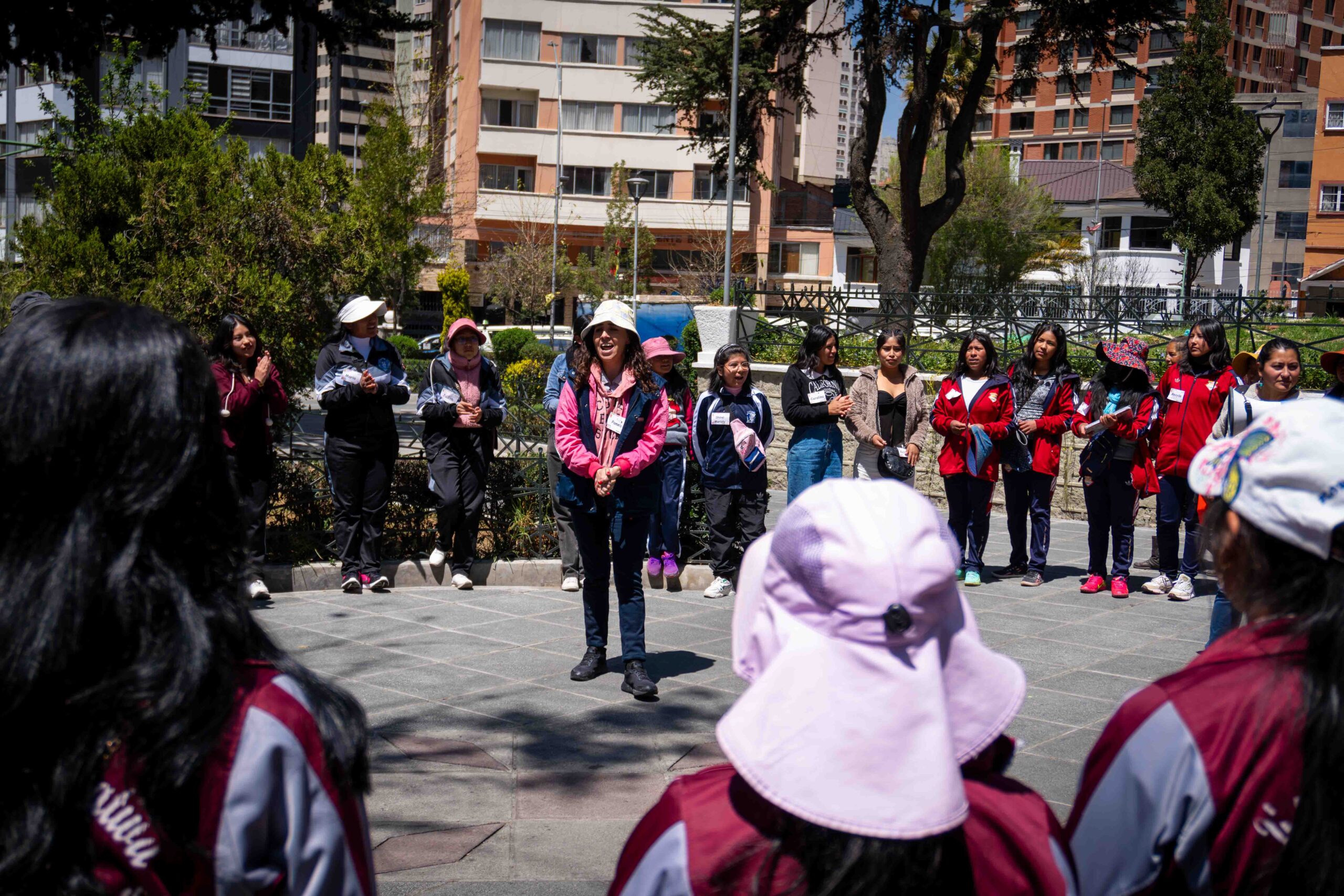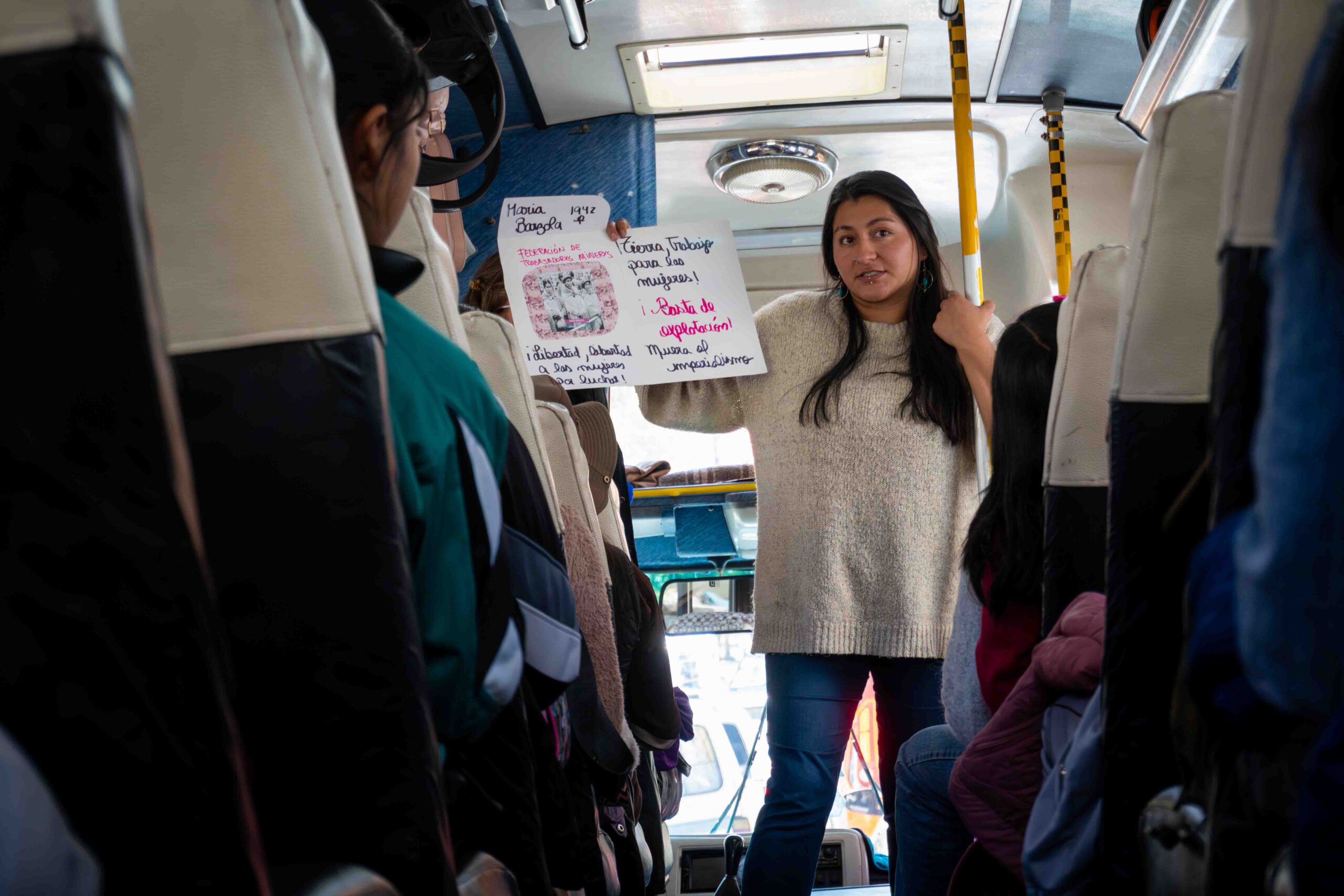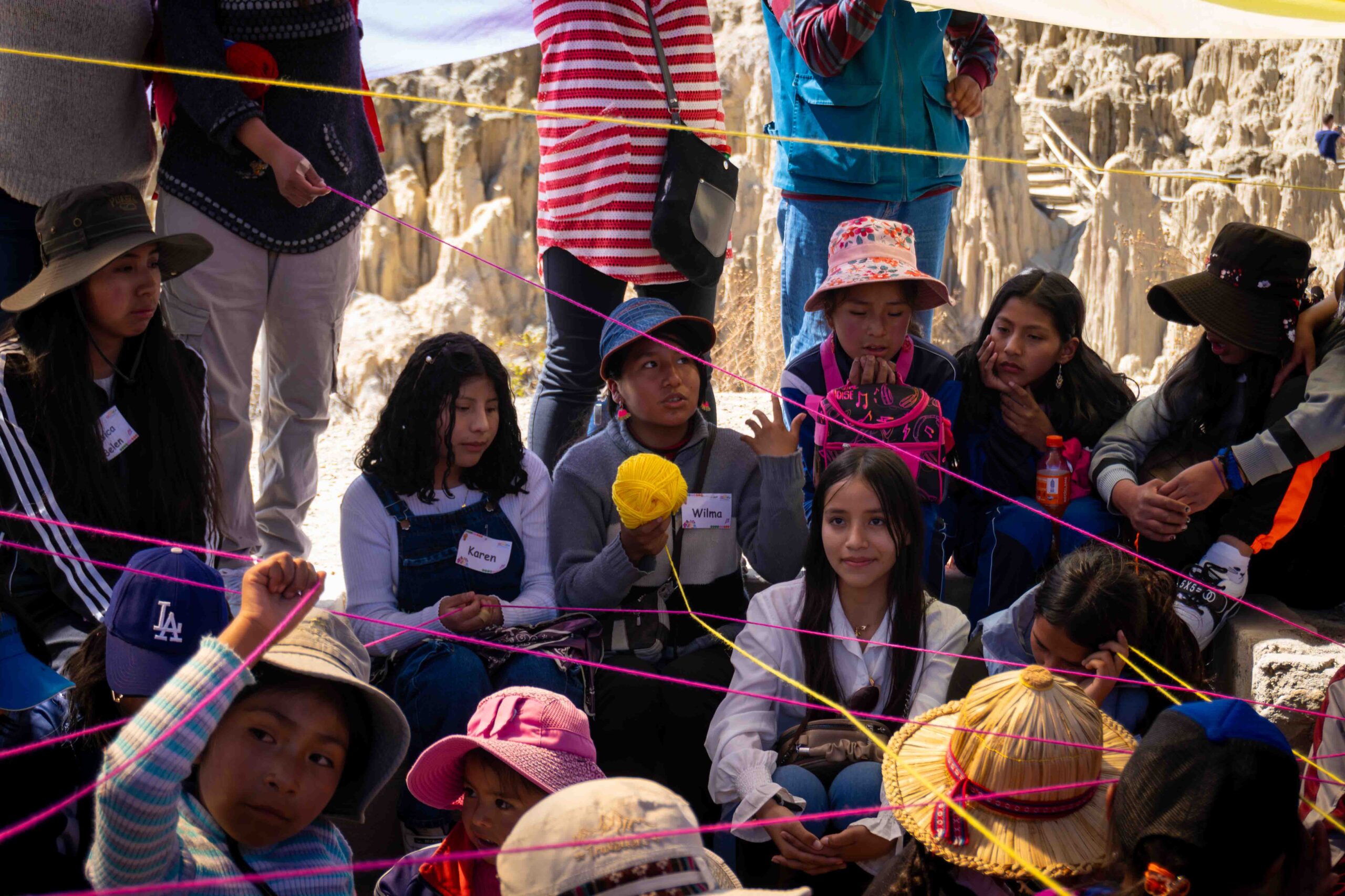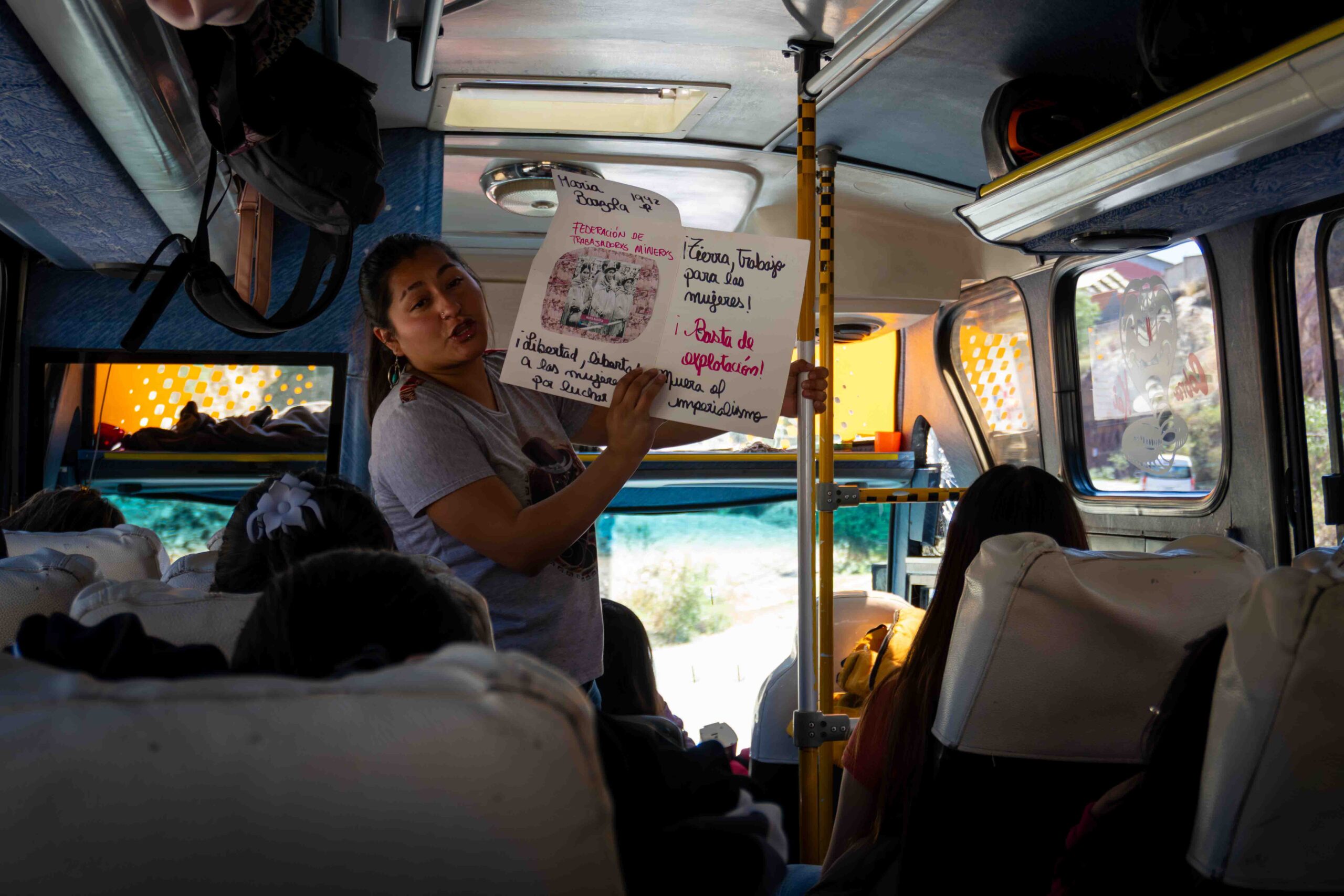 El paso por Achocalla permitió reflexionar sobre el tiempo, visibilizando cómo las mujeres destinan gran parte de sus días al trabajo de cuidado, al empleo remunerado y a la organización comunitaria, dejando poco espacio para sí mismas. Esta toma de conciencia motivó a las niñas a plantear nuevas formas de distribuir las responsabilidades y a exigir el derecho a vivir libres, sanas ycon dignidad.