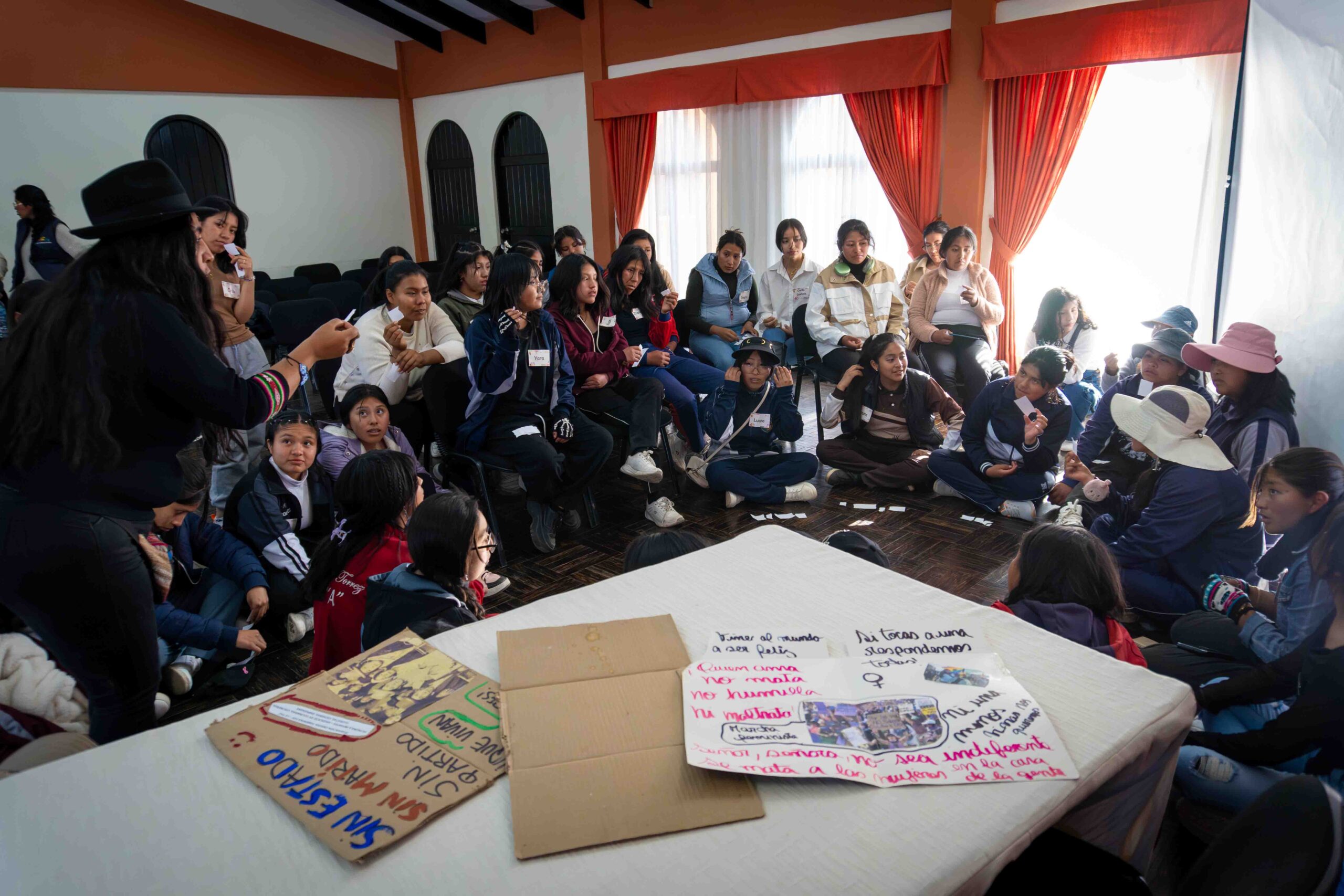 Como cierre del proceso, las participantes elaboraron planes de acción por unidad educativa, con el compromiso de replicar lo aprendido y promover cambios concretos hacia una vida libre de violencias. En la noche, un espacio de encuentro y sanación permitió resignificar el rol de las mujeres en comunidad, tejiendo miradas, risas, arte y afecto. La jornada concluyó con una fogata donde se quemaron simbólicamente los miedos, las inseguridades y los recuerdos