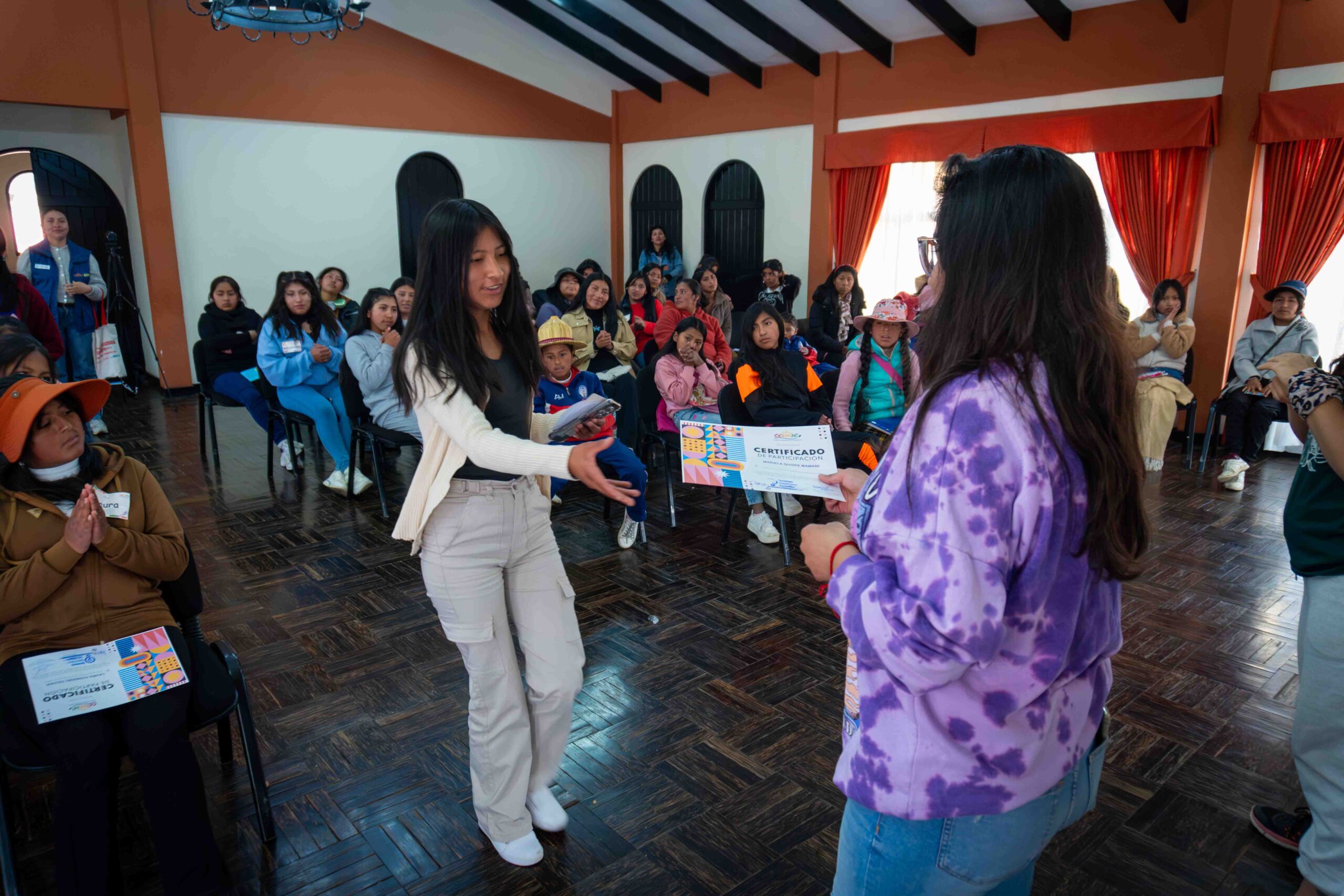 En el marco del proyecto “Promoviendo el derecho de niñas, niños y adolescentes de pueblos indígena originarios campesinos a educarse en su propia lengua, cultura y con igualdad de género en un contexto de recuperación justa post-pandemia Covid-19 en 6 regiones de Bolivia”, el Centro de Multiservicios Educativos – CEMSE, llevó adelante el Curso de Formación de Gestoras Comunitarias los días 12 y 13 de septiembre. El encuentro reunió a 40 niñas y adolescentes pertenecientes a pueblos Aymara, Uru, Quechua y Guaraní, en un proceso formativo que fortaleció su liderazgo y capacidad de acción comunitaria por una educación despatriarcalizadora con el apoyo de Generalitat Valenciana e InteRed